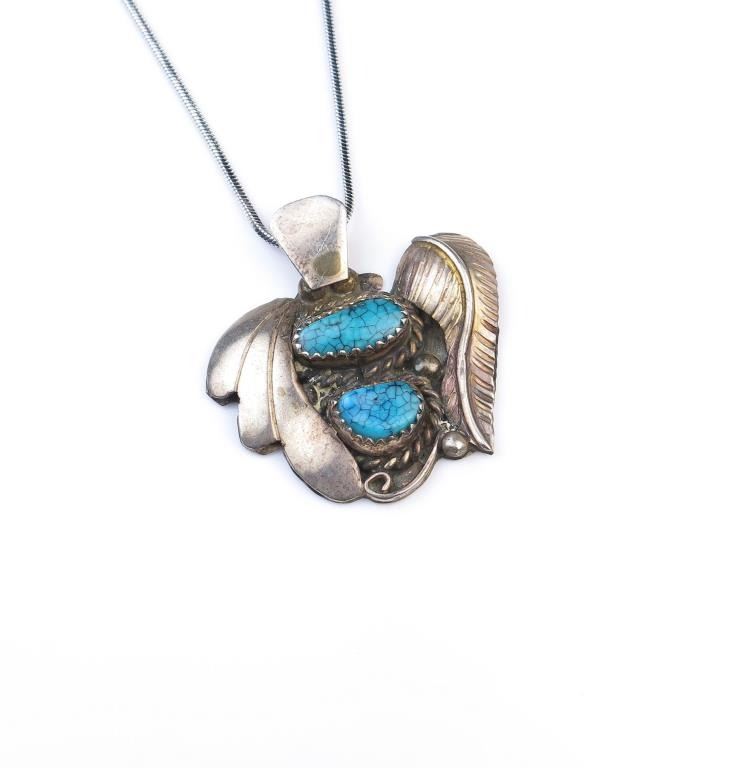 18CAI-70 TURQUOISE PENDANTNice Spider web Turquoise vintage southwest Sterling silver pendant. Estimates $100-$200Nice Spider web Turquoise vintage southwest Sterling silver pendant. Estimates $100-$200