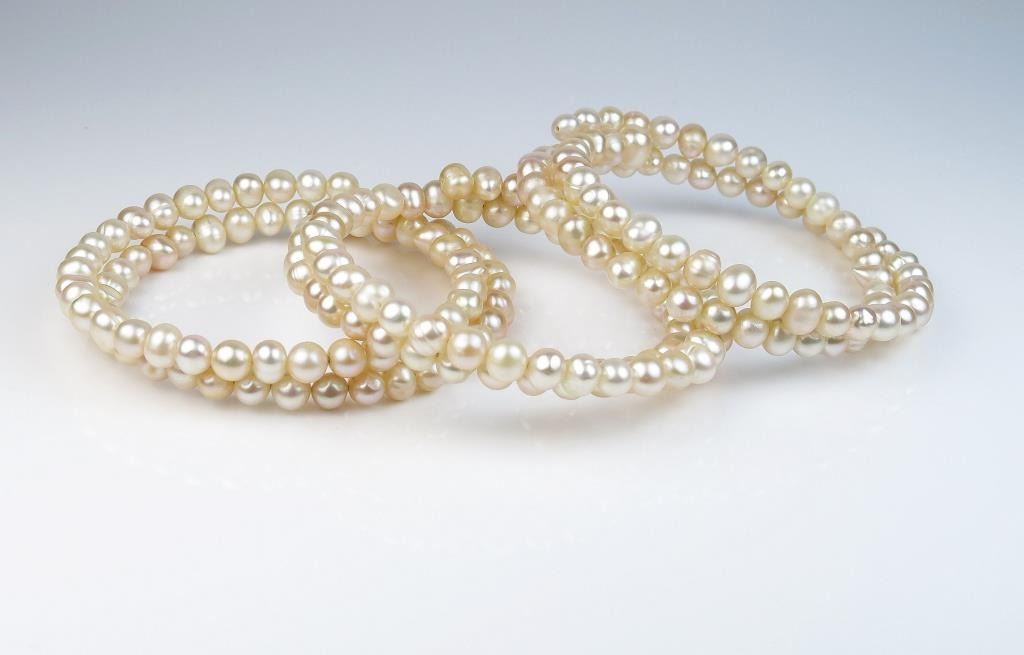Lot 974 18CAI-62 BANGLE BRACELETNice lot of three Freshwater Pearl bangle bracelets of a peach cream color