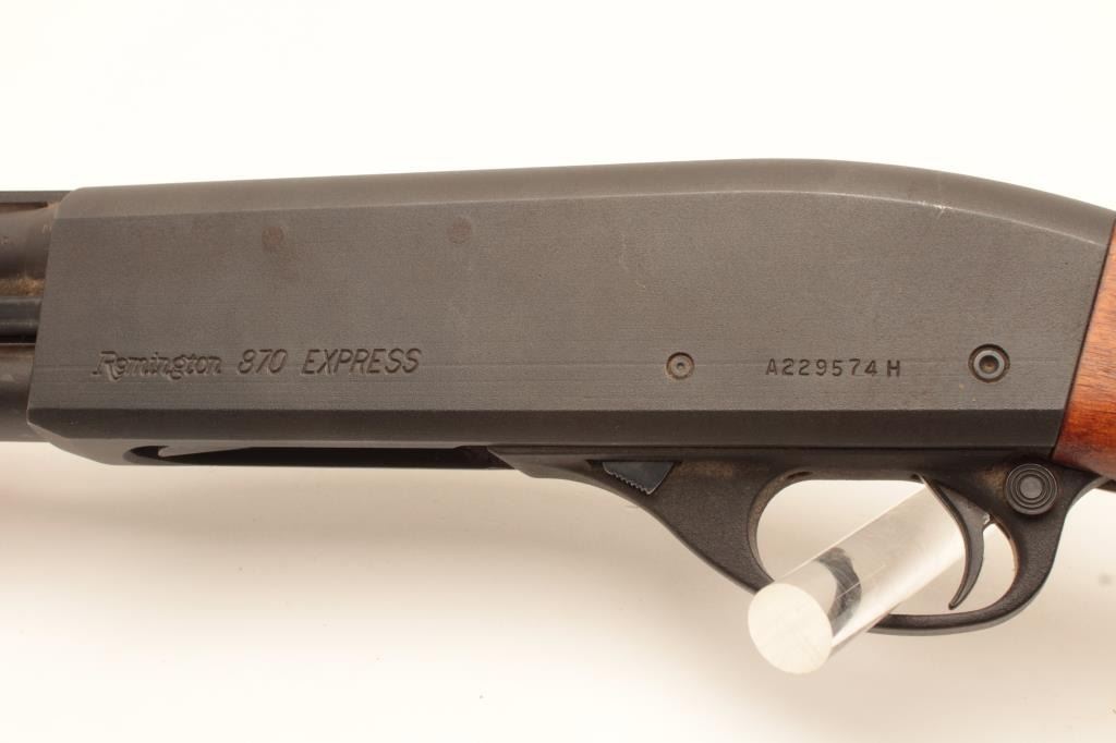 18BG-15 REMINGTON 870 #A229574Remington Model 870 Express pump action shotgun, .410 gauge, 25” ventilated rib barrel, parkerized finish, checkered wood stocks, S/N A229574H, in overall very good condition with majority of parkerized finishremaining, very good bore, crisp action, very good markings and wood stocks. (Modern/PPT). Est.: $250-$500.Remington Model 870 Express pump action shotgun, .410 gauge, 25” ventilated rib barrel, parkerized finish, checkered wood stocks, S/N A229574H, in overall very good condition with majority of parkerized finishremaining, very good bore, crisp action, very good markings and wood stocks. (Modern/PPT). Est.: $250-$500.
