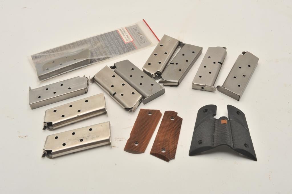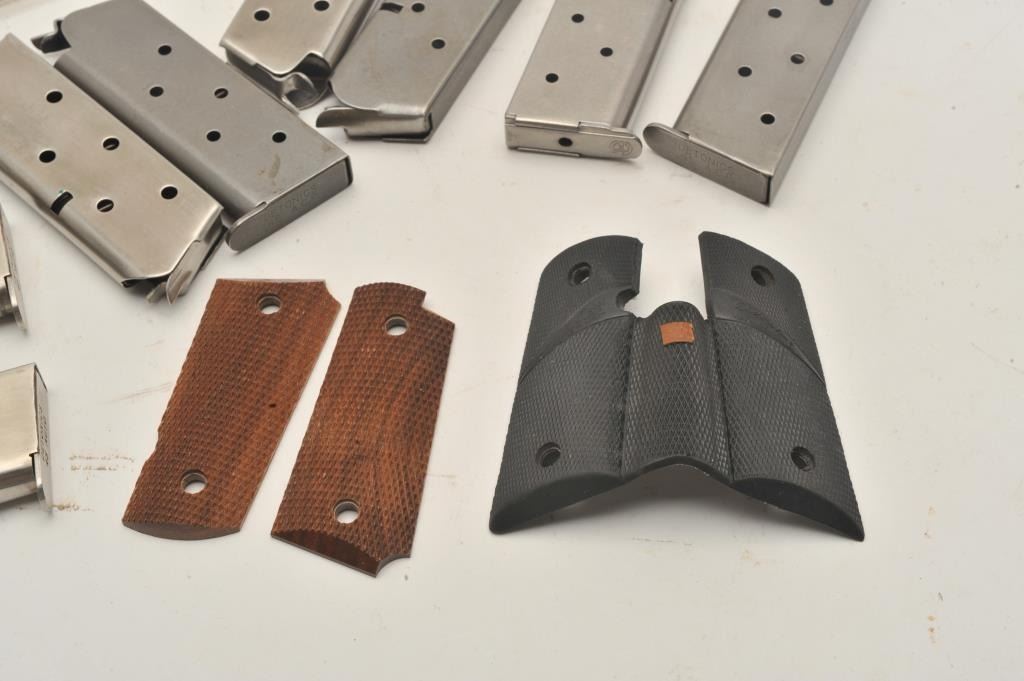 Lot 1039 18BM-74 DETONIC CLIPS11 Detonics magazines with a couple of manuels and 2 pairs of grips. Est.: $20