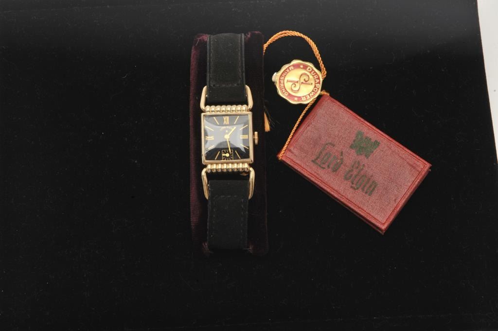 18BZ-18 LORD ELGIN WRISTWATCH21 jewel Lord Elgin wristwatch in almost new condition. Found in stock 30 years ago. Made 1950’s. Est.: $250-$50021 jewel Lord Elgin wristwatch in almost new condition. Found in stock 30 years ago. Made 1950’s. Est.: $250-$500