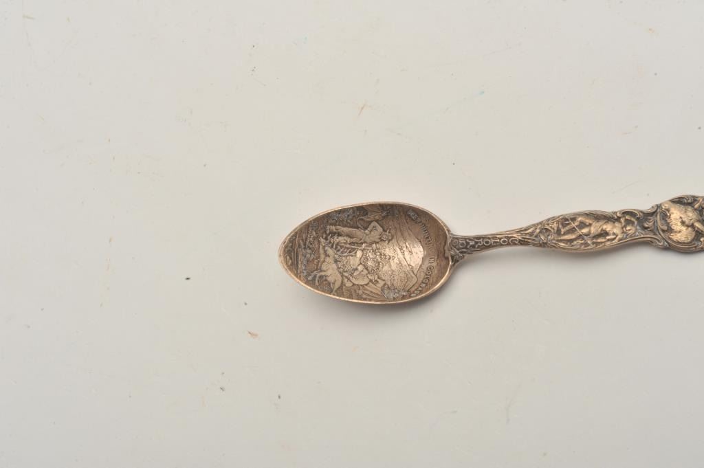 Lot 1064 EVE-417 STERLING SOUVENIR SPOONSterling souvenir spoon “Deer Hunting in Colorado”. 19th century sce