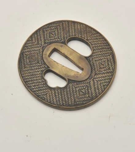 Lot 1066 EVE-420 BASKET WEAVE DESIGN TSUBABasket weave design cast brass tsuba for wakasashi (Japan). Hand c