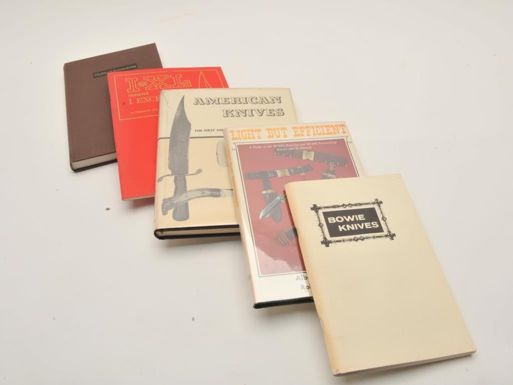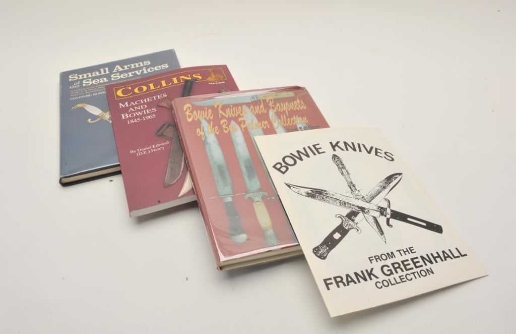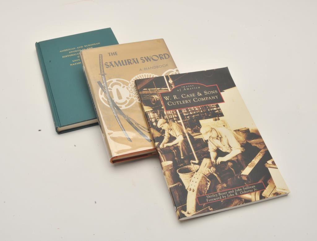 18EMY-12 SWORD & BLADE BOOKSLot of approximately 21 reference books on collectible swords and blades, many out-of-print including American Knives by Peterson, Collins Machetes and Bowies (1845-1965) by Henry, The Samurai Sword byYumoto, Bowie Knives from the Frank Greenhall Collection, etc. Est.: $150-$300.Lot of approximately 21 reference books on collectible swords and blades, many out-of-print including American Knives by Peterson, Collins Machetes and Bowies (1845-1965) by Henry, The Samurai Sword byYumoto, Bowie Knives from the Frank Greenhall Collection, etc. Est.: $150-$300.