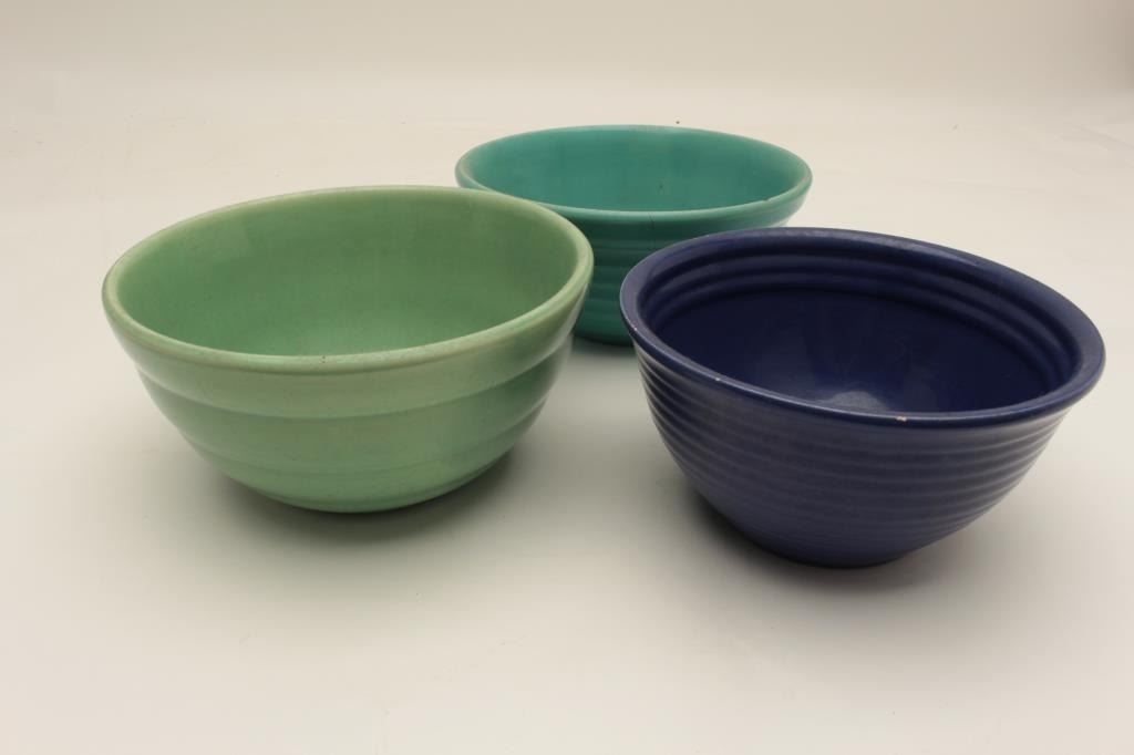17FU-9 LOT "BAUER" MIXING BOWLS 1950s 5 PIECESLot of 5 “Bauer” mixing bowls ca. 1950’s; different sizes; colors include blue, orange, turquoise and green. Est.: $100-$200.Lot of 5 “Bauer” mixing bowls ca. 1950’s; different sizes; colors include blue, orange, turquoise and green. Est.: $100-$200.