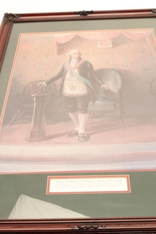 17FU-10 2 PICTURES COLONIAL FRAMED CIRCA 1980sTwo beautifully framed and matted color prints (ca.1980’s) of Colonial figures, one identified as George Washington; each approximately 40” x 27” overall and both in very good condition. Est.: $150-$300.Two beautifully framed and matted color prints (ca.1980’s) of Colonial figures, one identified as George Washington; each approximately 40” x 27” overall and both in very good condition. Est.: $150-$300.