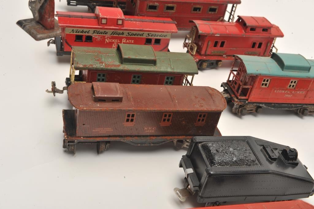 Lot 1139 17FU-24 TIN TRAINS 1930-1940 LIONEL/AMER. FLYERLot of 12 old toy train cars, ca. 1930s-40s, by Lio