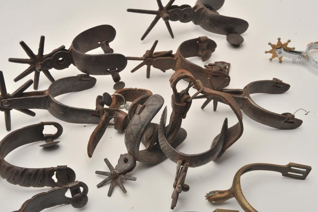 Lot 1163 18AP-96 SPUR COLLECTIONCollection of misc. old spurs and a reproduction President John Adams brass