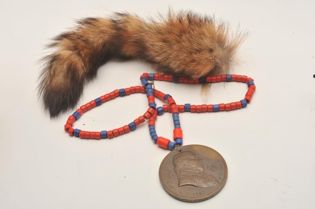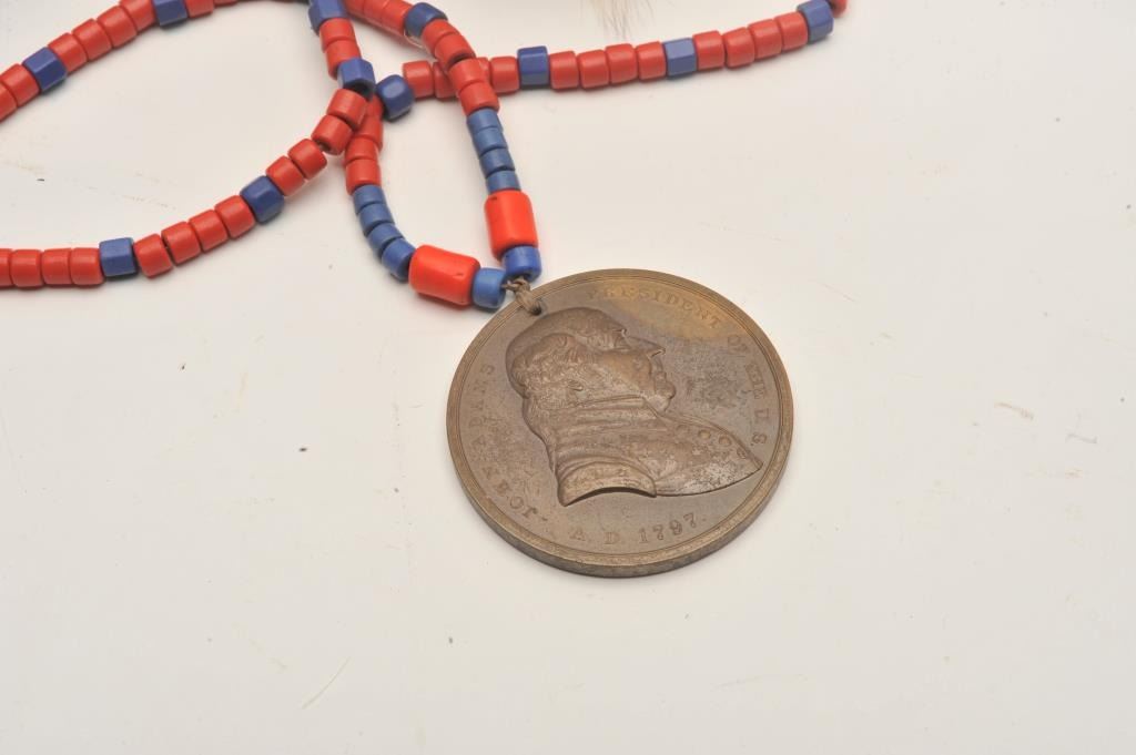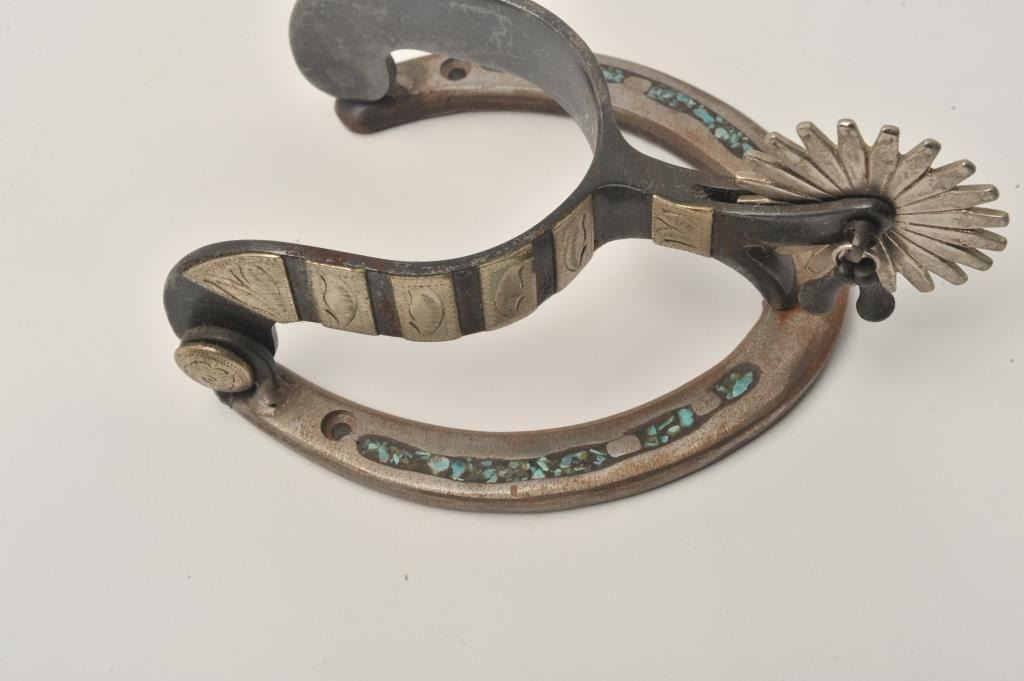 18AP-96 SPUR COLLECTIONCollection of misc. old spurs and a reproduction President John Adams brass peace medal on beaded necklace. Est.: $150-$300.Collection of misc. old spurs and a reproduction President John Adams brass peace medal on beaded necklace. Est.: $150-$300.