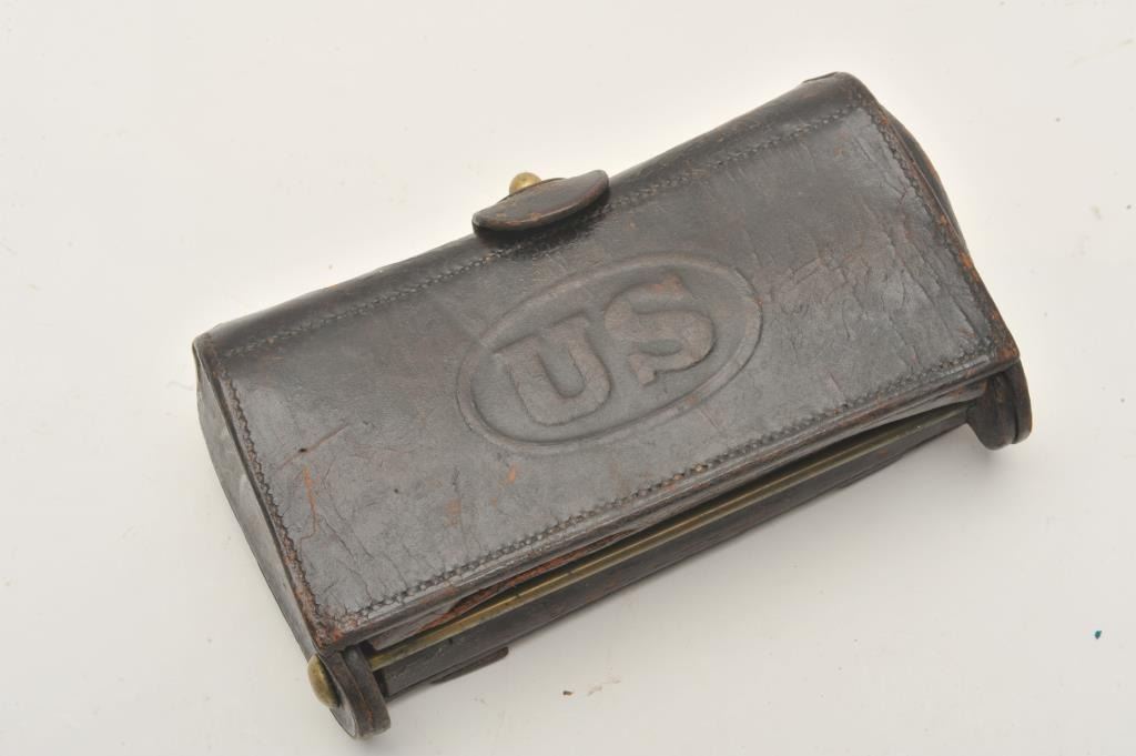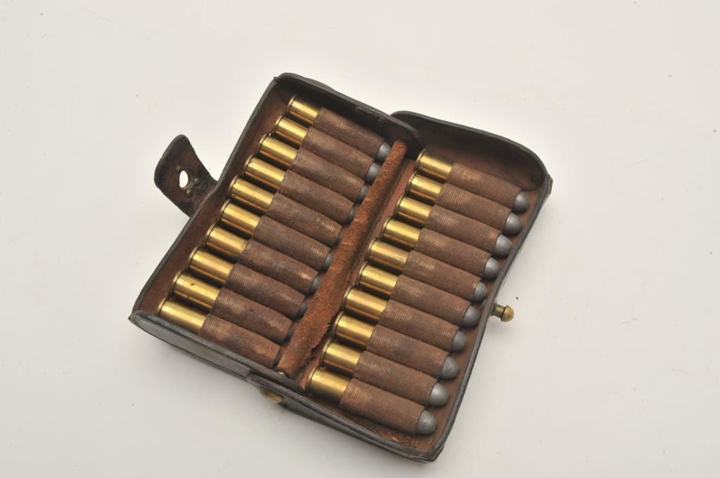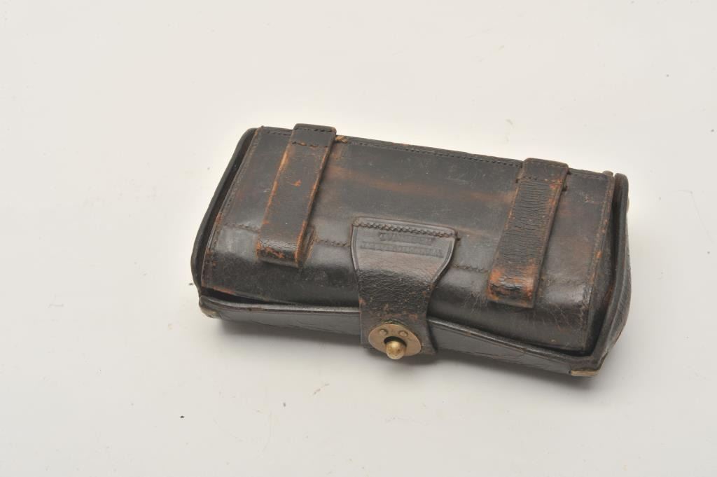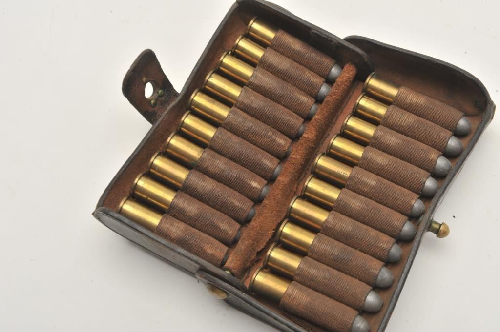 Lot 1166 18AP-1000 U.S. MARKED CART.U.S. leather cartridge case with dummy .45-70 rounds. Est.: $50-$1