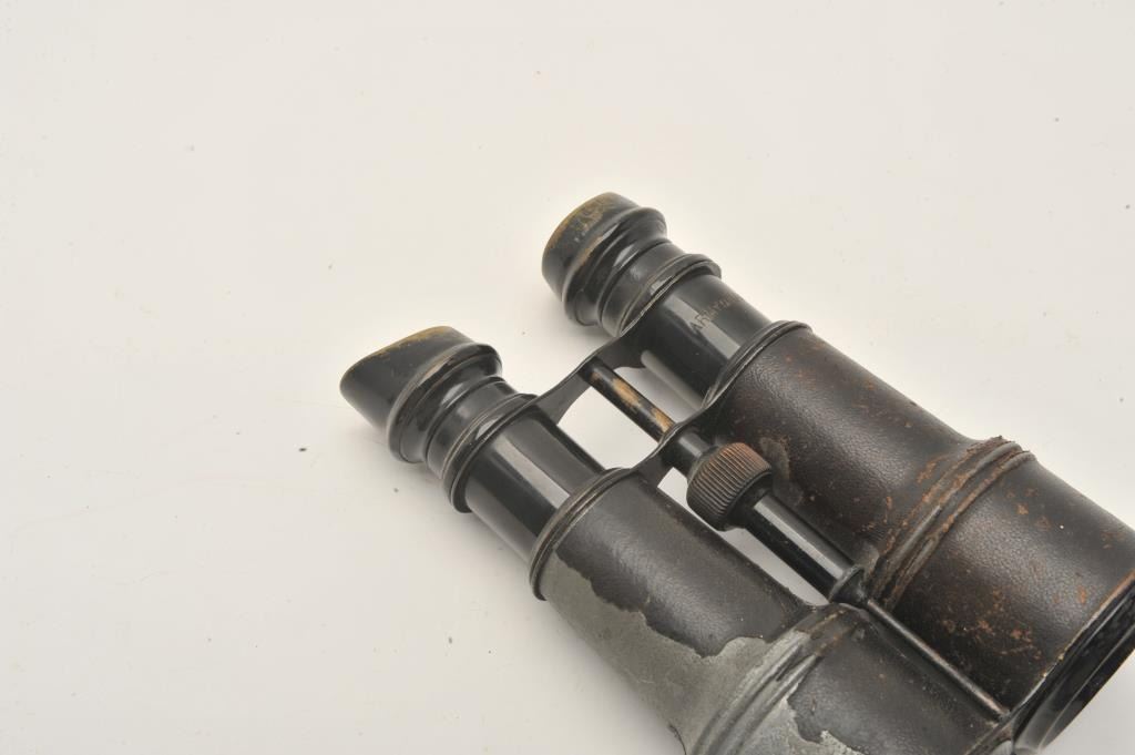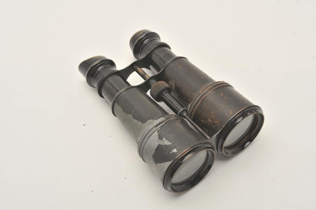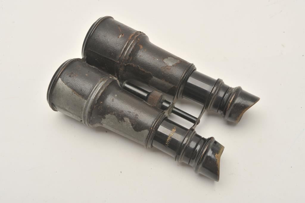 18AP-1003 ARMY & NAVY MKD BINOCULARSArmy & Navy marked binoculars. These old metal binoculars are marked, “ARMY & NAVY” on both sides. The binoculars are in fair overall condition with much of the original black finish wearing off the tubes and thebrass eye cups. Est.: $50-$100.Army & Navy marked binoculars. These old metal binoculars are marked, “ARMY & NAVY” on both sides. The binoculars are in fair overall condition with much of the original black finish wearing off the tubes and thebrass eye cups. Est.: $50-$100.