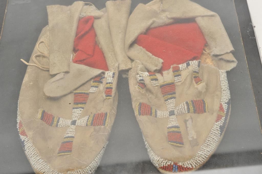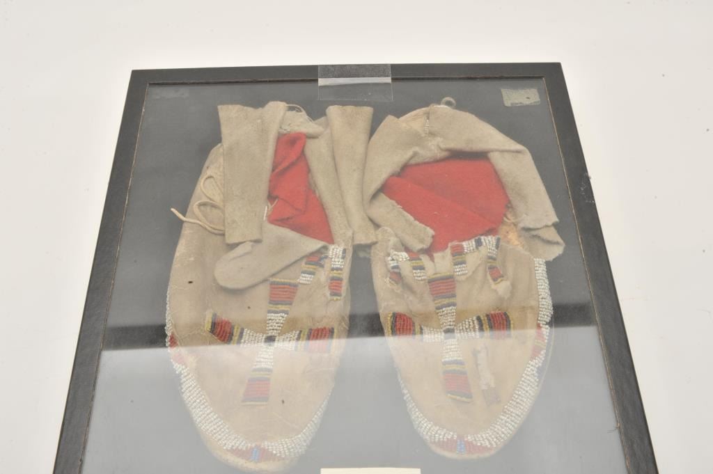 Lot 1169 18AP-69 BEADED MOCSPair of Indian beaded moccasins in riker case; cross designs. Est.: $100-$