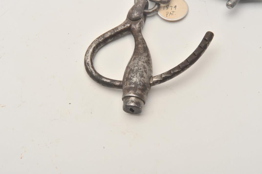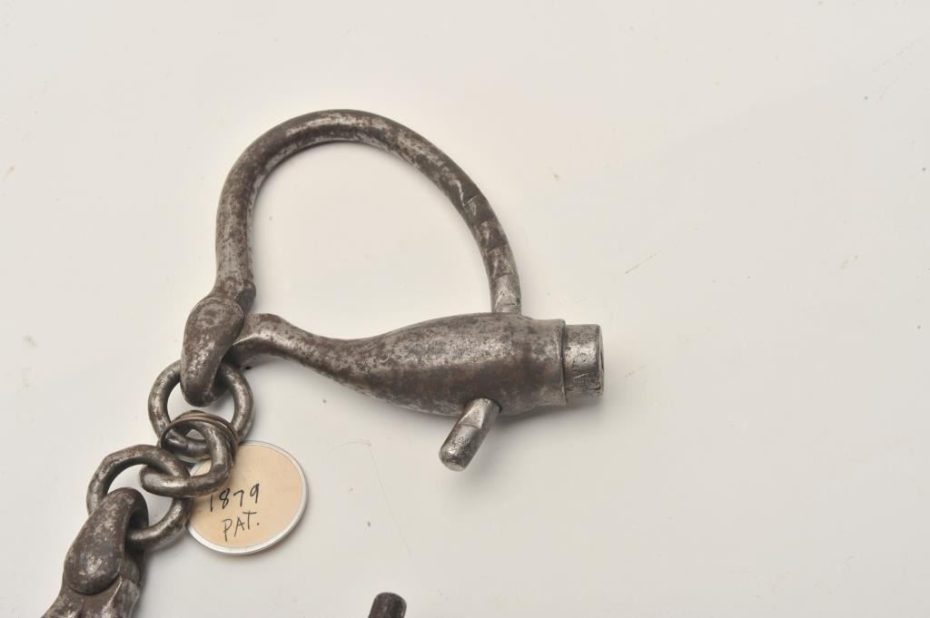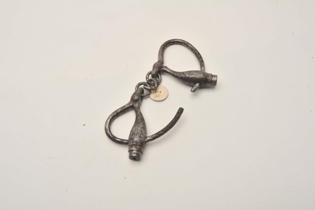 18AP-87 MARLIN CUFFSAntique Marlin handcuffs. The lot includes one set of marlin handcuffs in fair condition with moderate to heavy surface rust. The remainder of the metal surfaces area silver/grey patina. Est.: $100-$200.Antique Marlin handcuffs. The lot includes one set of marlin handcuffs in fair condition with moderate to heavy surface rust. The remainder of the metal surfaces area silver/grey patina. Est.: $100-$200.