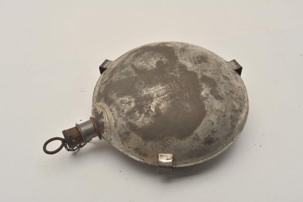 18AL-19 CANTEENTin canteen 1862-63 (Ref Page 181 #208 on inventory, No book title listed). No cover but stopper and chain is retained. Good condition. Est.: $200-$400Tin canteen 1862-63 (Ref Page 181 #208 on inventory, No book title listed). No cover but stopper and chain is retained. Good condition. Est.: $200-$400