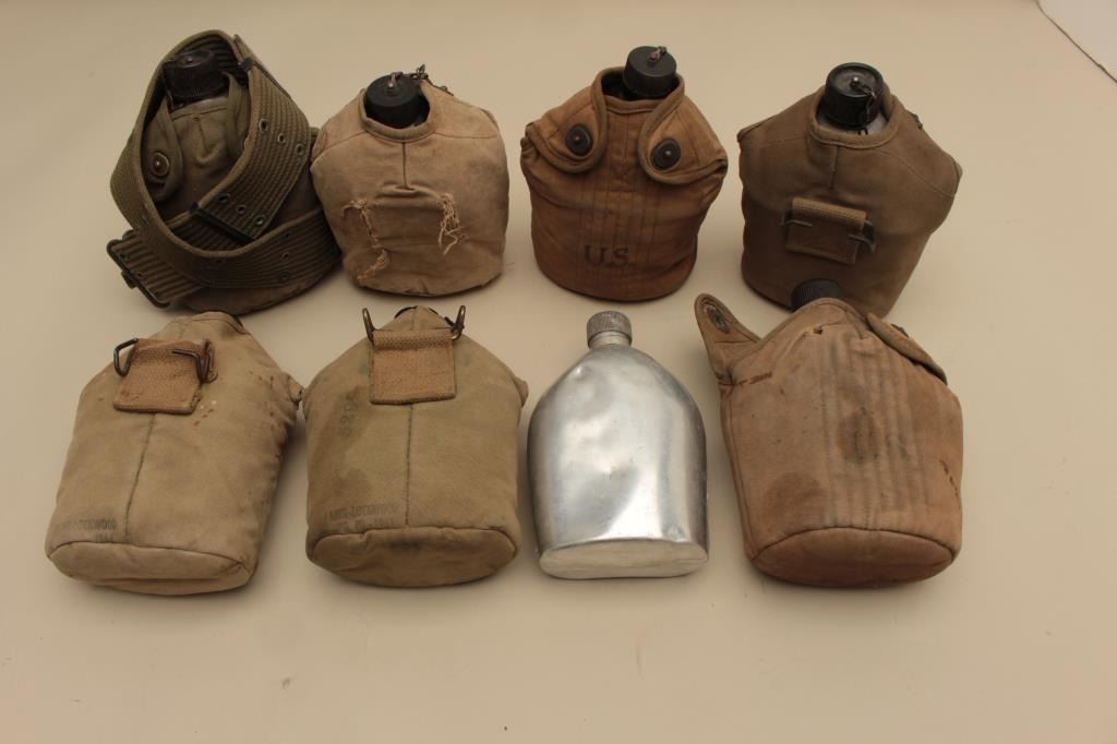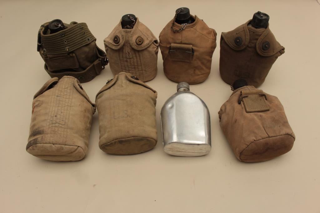 17JL-18 CANTEEN LOTLot of 8 U.S. military canteens, 7 with covers; mostly Korean War era. Est.: $150-$300.Lot of 8 U.S. military canteens, 7 with covers; mostly Korean War era. Est.: $150-$300.