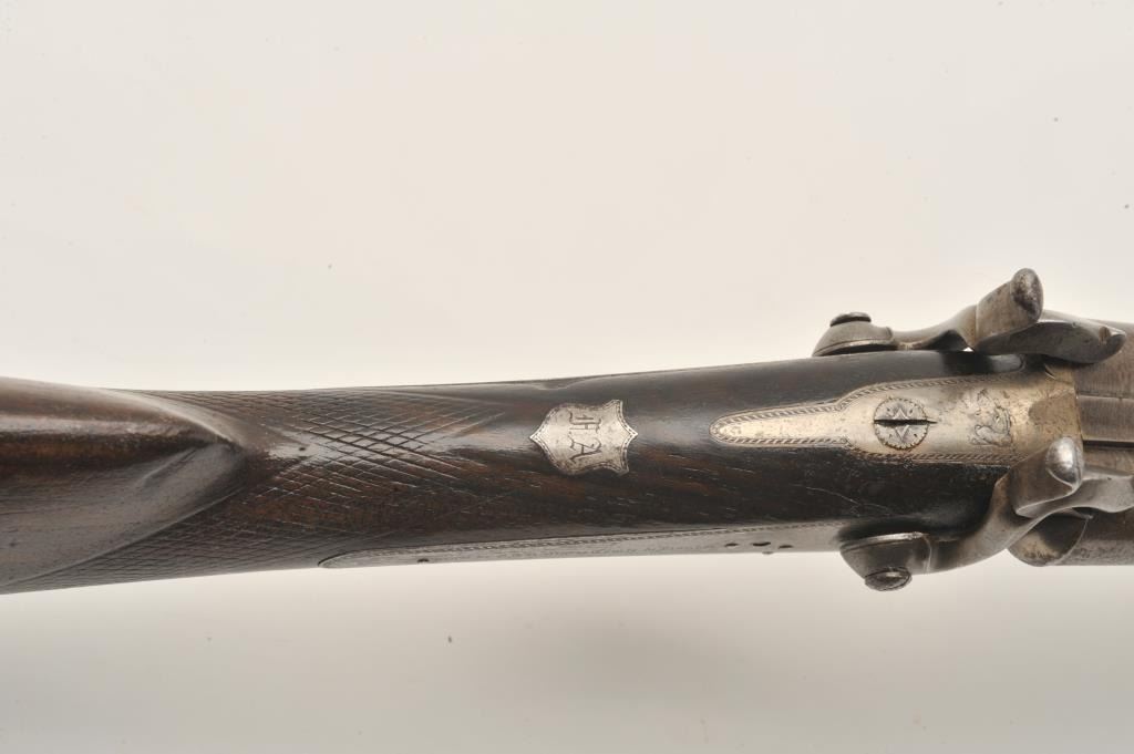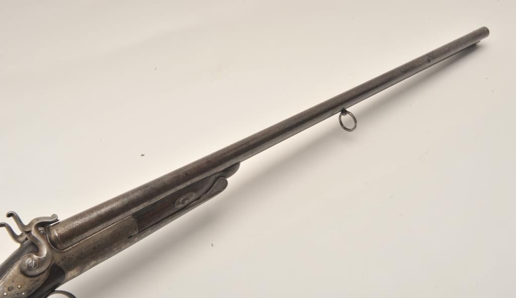 Lot 1244 18AR-50 PINFIREEuropean back action locks SxS pinfire shotgun, 12 gauge, 30” barrels, double trigg