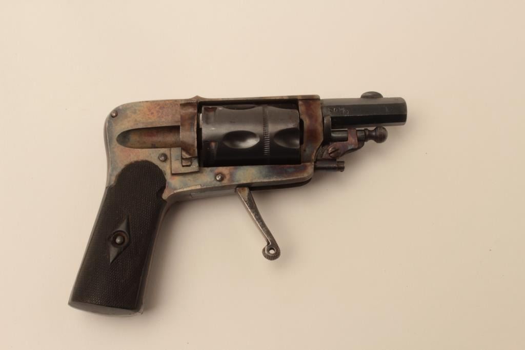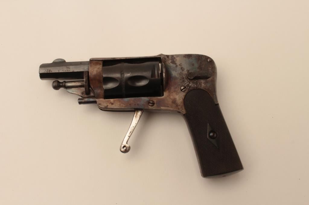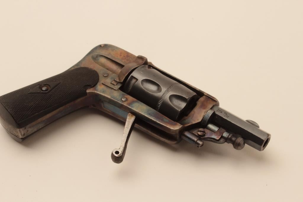 Lot 1245 18AR-72 VELO DOG REVOLVERBelgian 5mm Velo Dog style revolver with folding trigger circa 1890’s. 90%