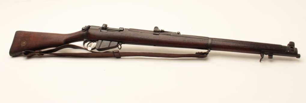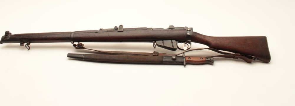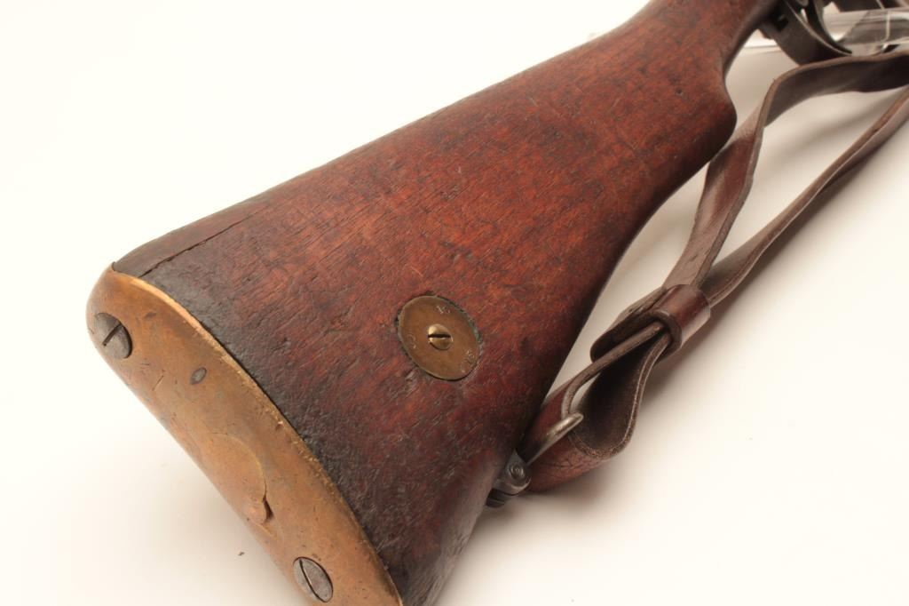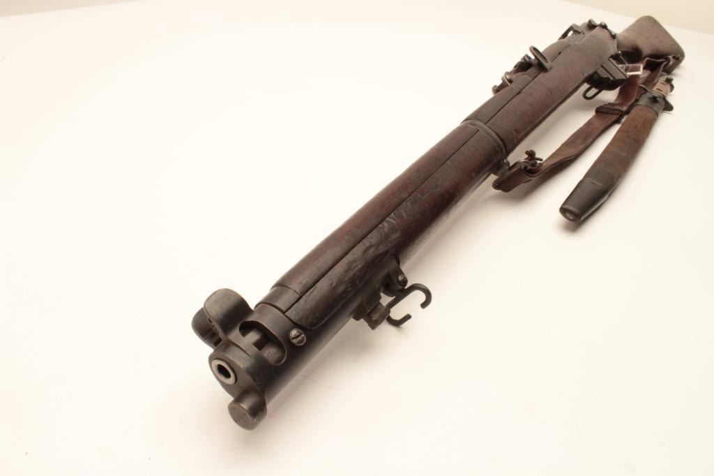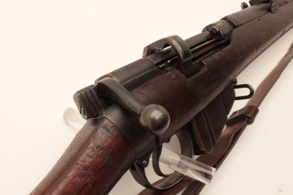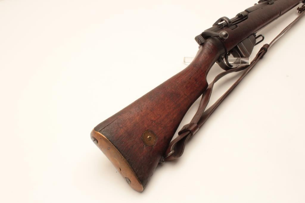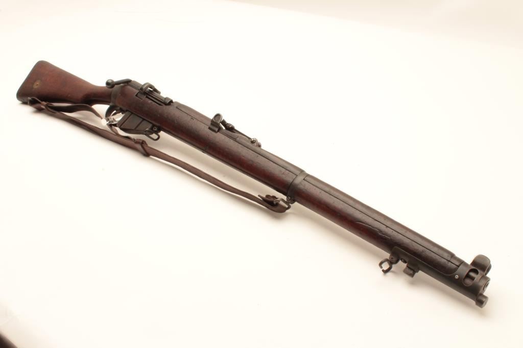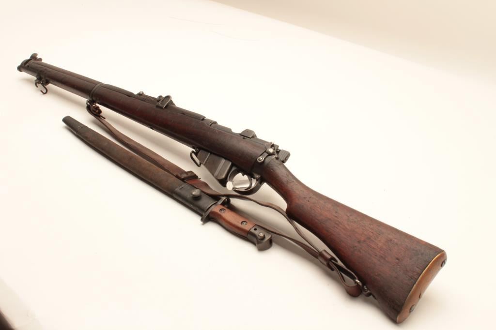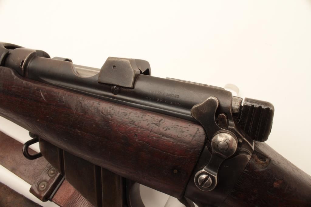 17MH-20 ENFIELD NO1 #63179British Enfield No. 1 MK III bolt action rifle by B.S.A., .303 caliber, import-marked, military finish, wood stock, bayonet and sheath, leather sling, S/N 63179, in overall good condition with a good bore, crispaction, good markings and good wood stock. (C&R/PPT). Est.: $250-$500.British Enfield No. 1 MK III bolt action rifle by B.S.A., .303 caliber, import-marked, military finish, wood stock, bayonet and sheath, leather sling, S/N 63179, in overall good condition with a good bore, crispaction, good markings and good wood stock. (C&R/PPT). Est.: $250-$500.