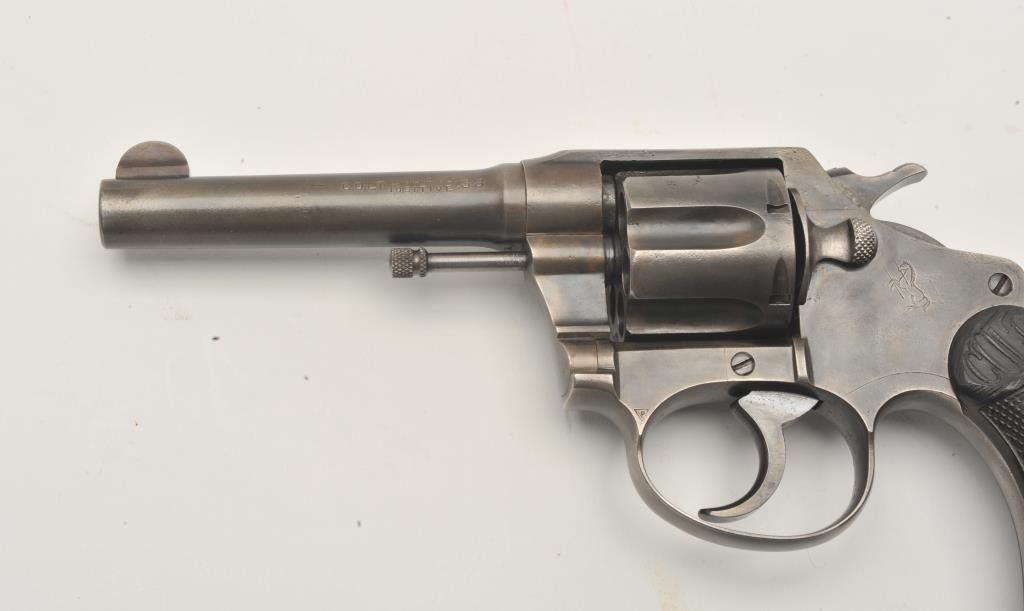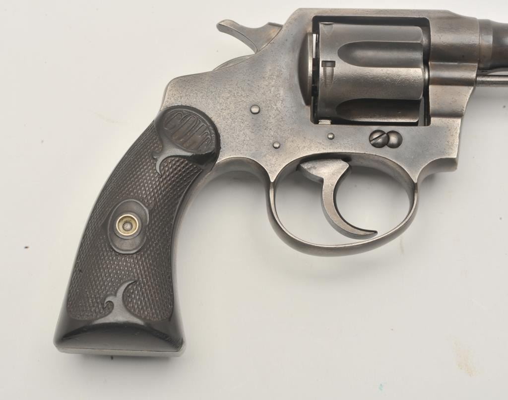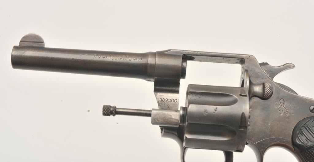 17LP-5 COLT POLICE POST. #139300Colt Police Positive revolver, .38 caliber, Serial #139300. The pistol is in good overall condition with a 4” barrel. The pistol has received an application of cold blue at some point and shows some finepinprick pitting in areas. The Colt marked checkered hard rubber grips are in good condition. The bore is good, the action crisp and markings are legible on this Colt manufactured in 1922. Est.: $150-$300.(C+R).Colt Police Positive revolver, .38 caliber, Serial #139300. The pistol is in good overall condition with a 4” barrel. The pistol has received an application of cold blue at some point and shows some finepinprick pitting in areas. The Colt marked checkered hard rubber grips are in good condition. The bore is good, the action crisp and markings are legible on this Colt manufactured in 1922. Est.: $150-$300.(C+R).