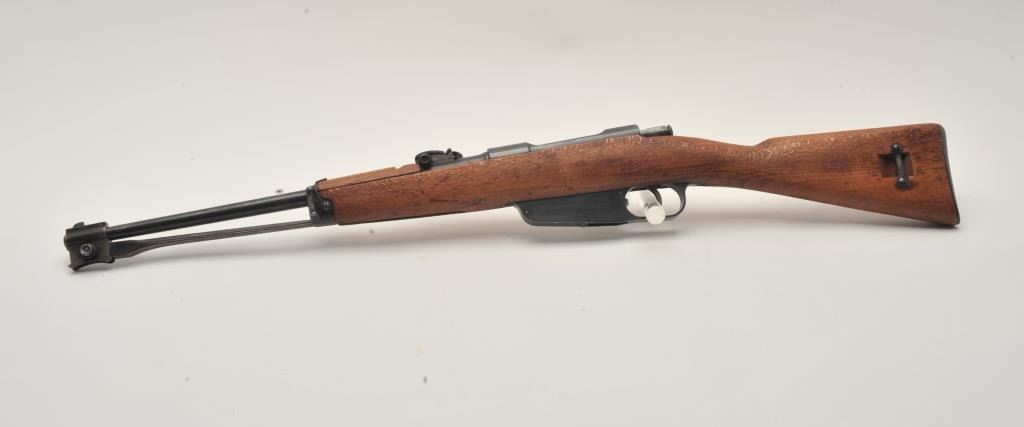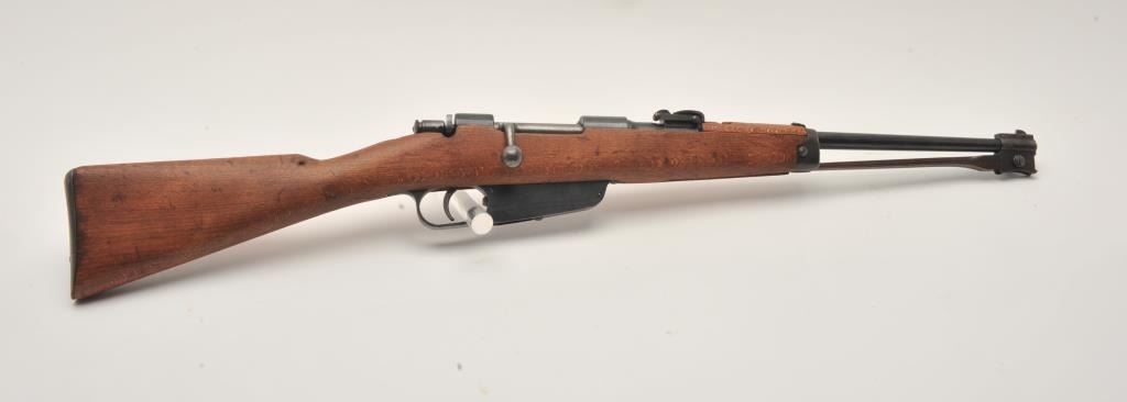 17MH-61 CARCANO #YA4185Italian Carcano bolt action carbine, 6.5mm caliber, blued finish, wood stock, folding bayonet, S/N YA4185, in overall good to very good condition with a good bore, crisp action and markings, very good stock.(C&R/PPT). Est.: $200-$400.Italian Carcano bolt action carbine, 6.5mm caliber, blued finish, wood stock, folding bayonet, S/N YA4185, in overall good to very good condition with a good bore, crisp action and markings, very good stock.(C&R/PPT). Est.: $200-$400.