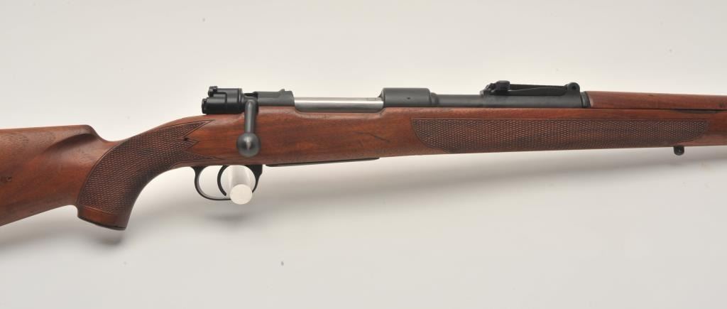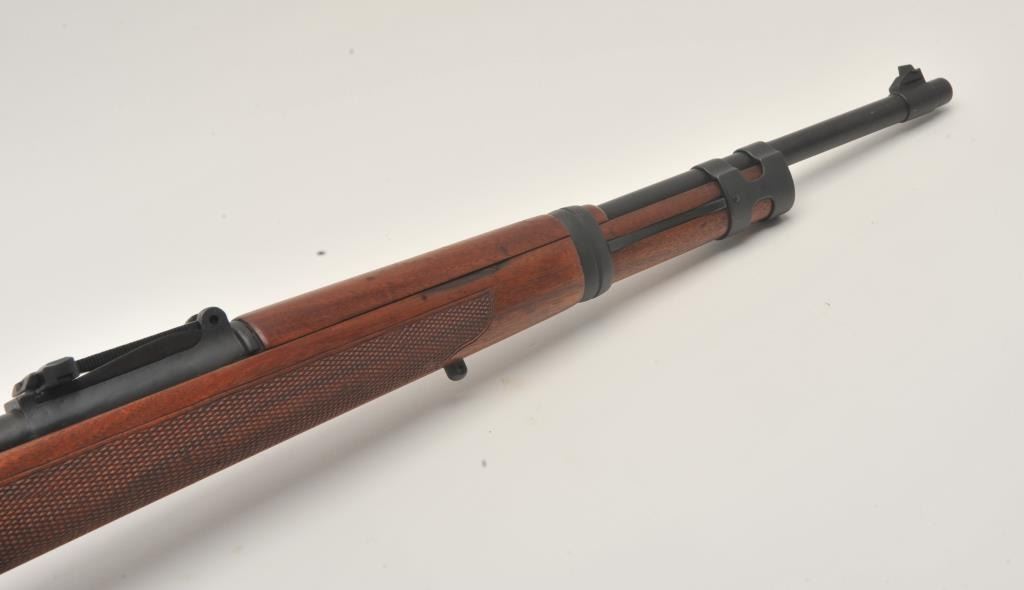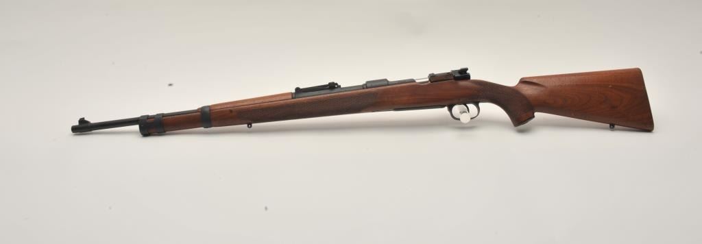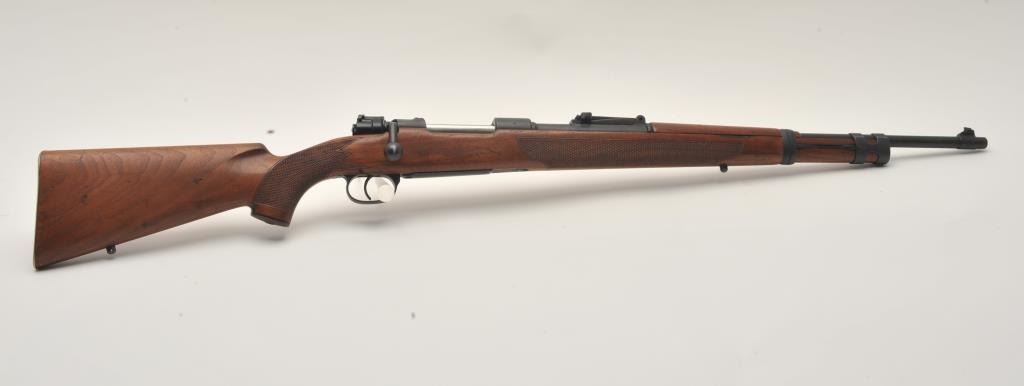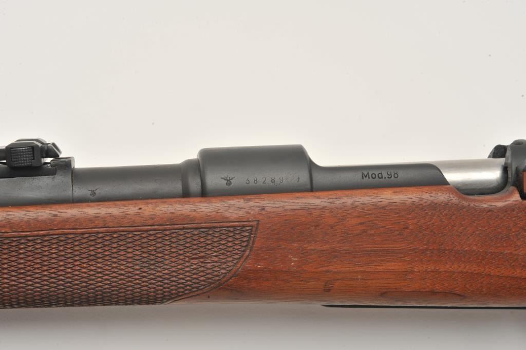 17MH-68 SPORTERIZED BYF #38289FSporterized German Model 98 bolt action rifle, byf marked, 8mm caliber, mat black re-finish to metal surfaces, checkered wood stock, S/N 38289, in overall good condition with a good bore, crisp action and good woodstock. (C&R/PPT). Est.: $150-$300.Sporterized German Model 98 bolt action rifle, byf marked, 8mm caliber, mat black re-finish to metal surfaces, checkered wood stock, S/N 38289, in overall good condition with a good bore, crisp action and good woodstock. (C&R/PPT). Est.: $150-$300.