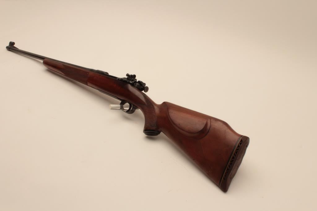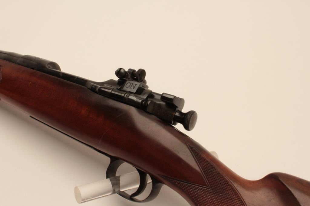 17LB-17 SPRINGFIELD 03-A3 #895182Sporterized U.S. Springfield Model 1903 bolt action rifle, .30-06 caliber, old re-blued finish, Lyman adjustable rear sight, hooded ramp front sight, checkered wood stock, S/N 895182, in overall fair to good condition assporterized; good bore, crisp action, good stock with added White Line hard rubber butt pad. (C&R/No PPT). Est.: $150-$300.Sporterized U.S. Springfield Model 1903 bolt action rifle, .30-06 caliber, old re-blued finish, Lyman adjustable rear sight, hooded ramp front sight, checkered wood stock, S/N 895182, in overall fair to good condition assporterized; good bore, crisp action, good stock with added White Line hard rubber butt pad. (C&R/No PPT). Est.: $150-$300.