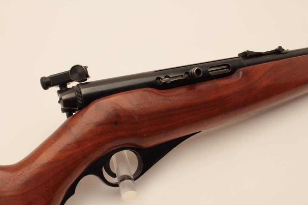 17KH-585 MOSSBERGMossberg Model 151M semi-automatic rifle, .22LR caliber, blued finish, wood stock, no visible S/N, in overall very good to fine condition with majority of original finish, very good bore, crisp action and markings,near fine wood stock. (Modern/PPT). Est.: $100-$200.Mossberg Model 151M semi-automatic rifle, .22LR caliber, blued finish, wood stock, no visible S/N, in overall very good to fine condition with majority of original finish, very good bore, crisp action and markings,near fine wood stock. (Modern/PPT). Est.: $100-$200.