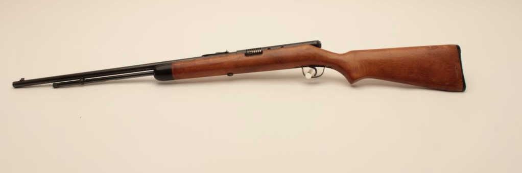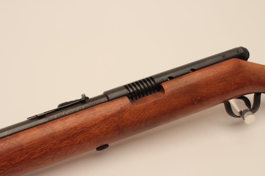17KH-586 STEVENSStevens Model 87 AB semi-automatic rifle, .22 short, long or LR caliber, blued finish, wood stock, no visible S/N, in overall good + condition with a good bore, crisp action, good markings, majority of original finishremaining, good wood stock. (Modern/PPT). Est.: $100-$200.Stevens Model 87 AB semi-automatic rifle, .22 short, long or LR caliber, blued finish, wood stock, no visible S/N, in overall good + condition with a good bore, crisp action, good markings, majority of original finishremaining, good wood stock. (Modern/PPT). Est.: $100-$200.
