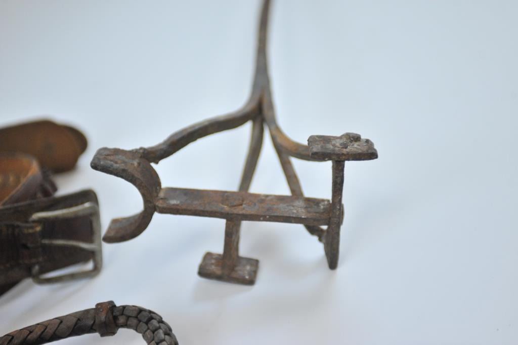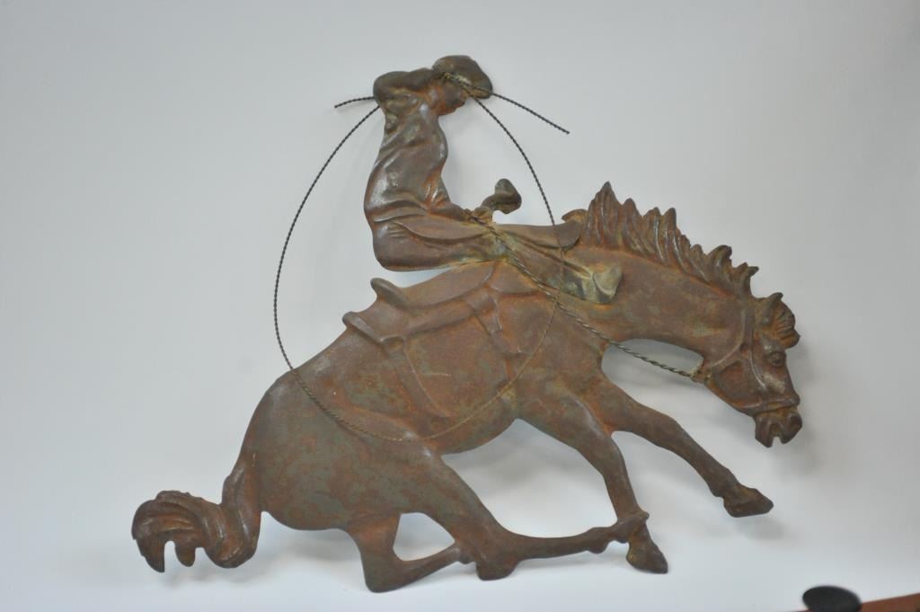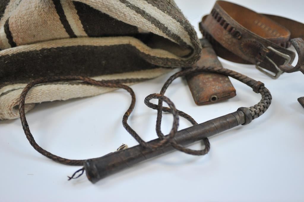 Lot 1349 17LW-14 WESTERN THEME LOTWestern Theme lot, Door knocker, metal plaque of Roper, Whip of branded le