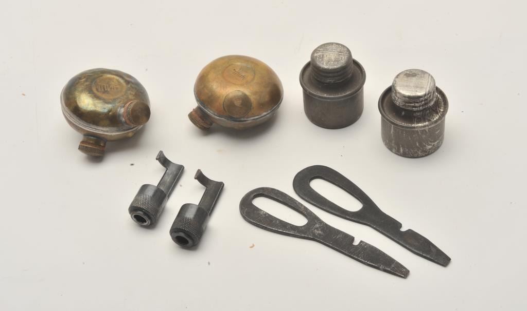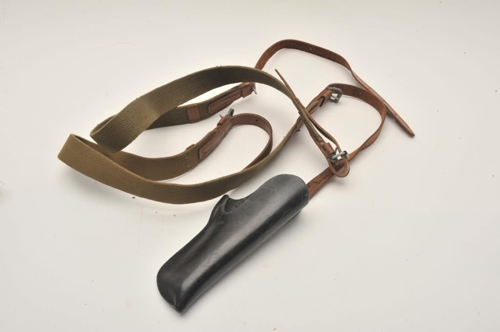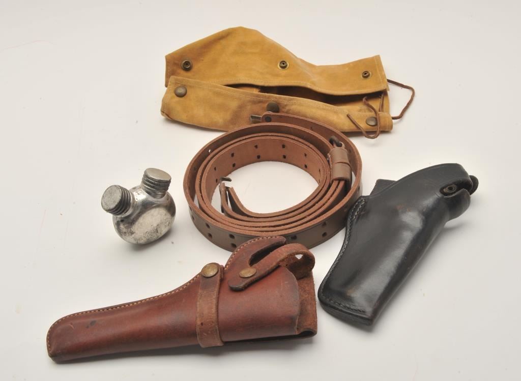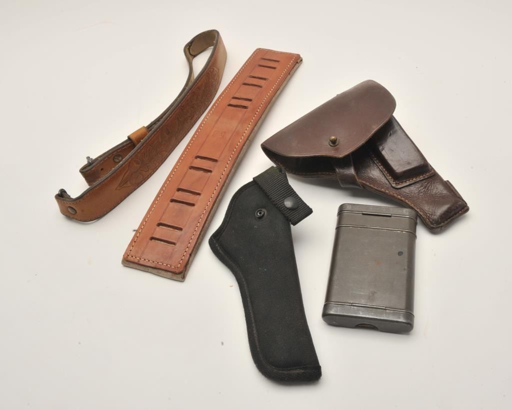 Lot 1377 17MH-77 LOT OF SLINGS & HOLSTERSLot of misc. holsters, straps, oilers, metal military field cleanin