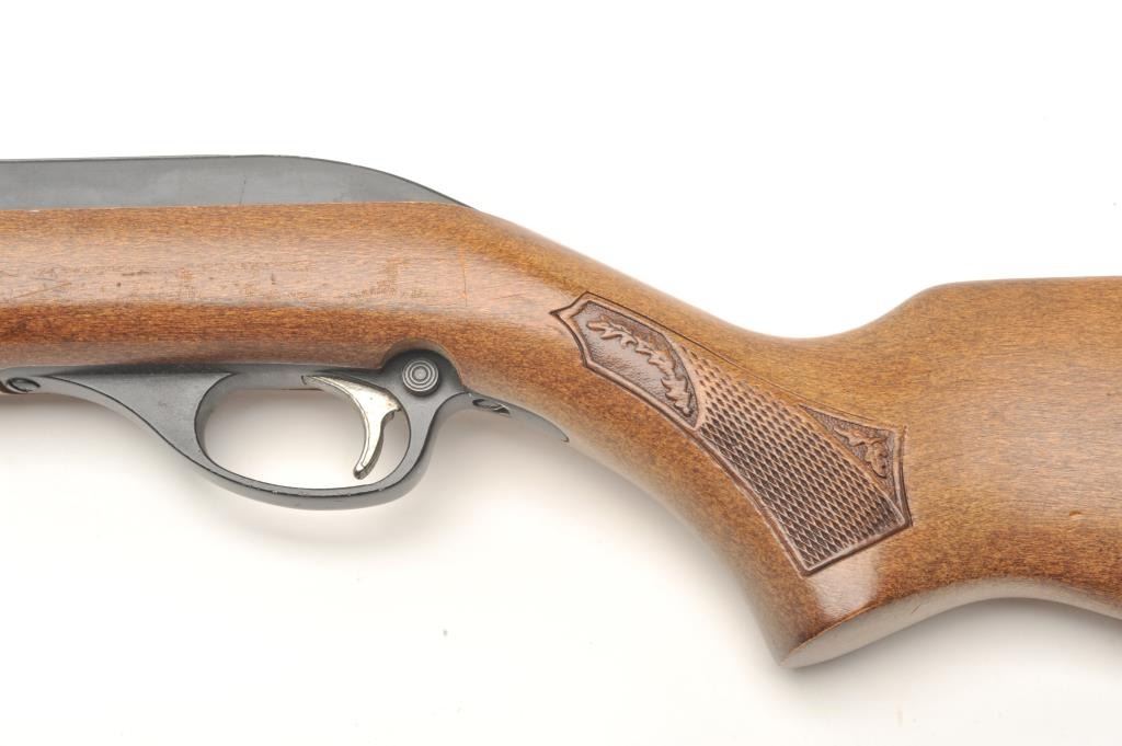 17ASB-45 MARLIN MOD 60 #23610189Marlin Model 60 semi-auto rifle, .22 L.R. caliber, serial #23610189. The rifle is in very good overall condition with a 22” round barrel. The barrel, magazine and receiver retain nearly all of their blued finish withonly minor handling marks noted. The smooth wood stock is in very good condition with only light storage marks. The butt stock ends with a plastic butt plate. The bore is very good, the action crisp and markings aresharp on this lightly used Marlin. (Modern) Est.: $50-100.Marlin Model 60 semi-auto rifle, .22 L.R. caliber, serial #23610189. The rifle is in very good overall condition with a 22” round barrel. The barrel, magazine and receiver retain nearly all of their blued finish withonly minor handling marks noted. The smooth wood stock is in very good condition with only light storage marks. The butt stock ends with a plastic butt plate. The bore is very good, the action crisp and markings aresharp on this lightly used Marlin. (Modern) Est.: $50-100.