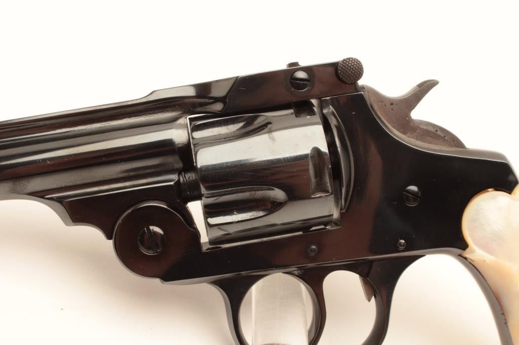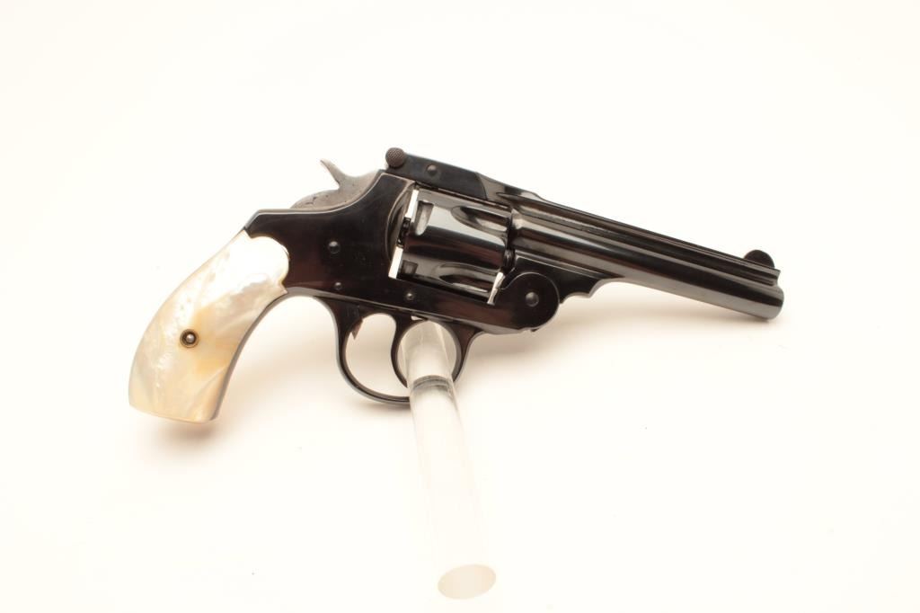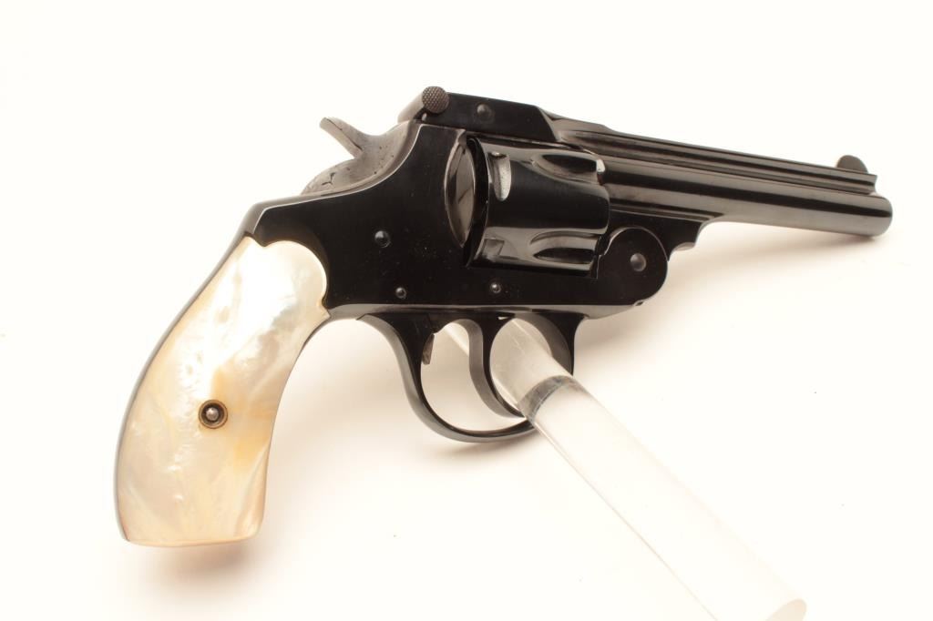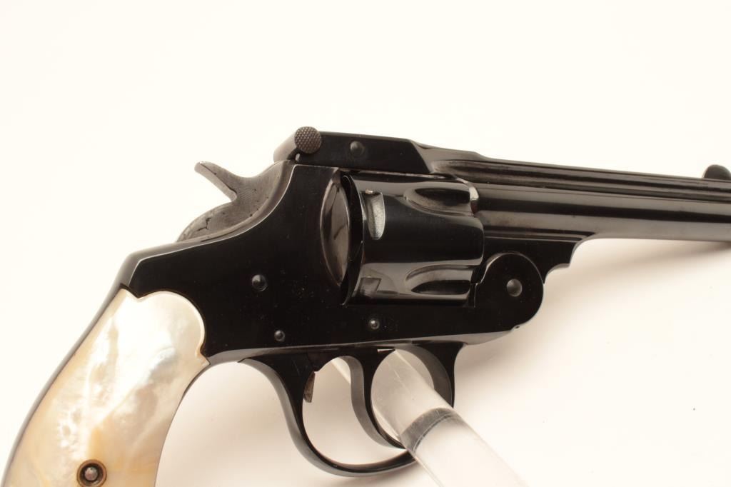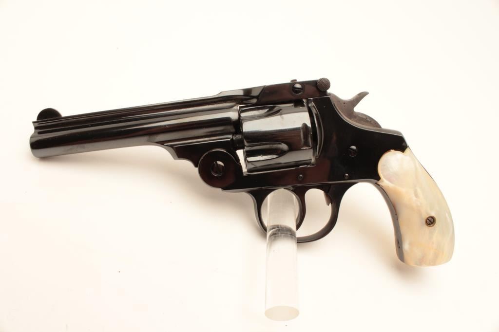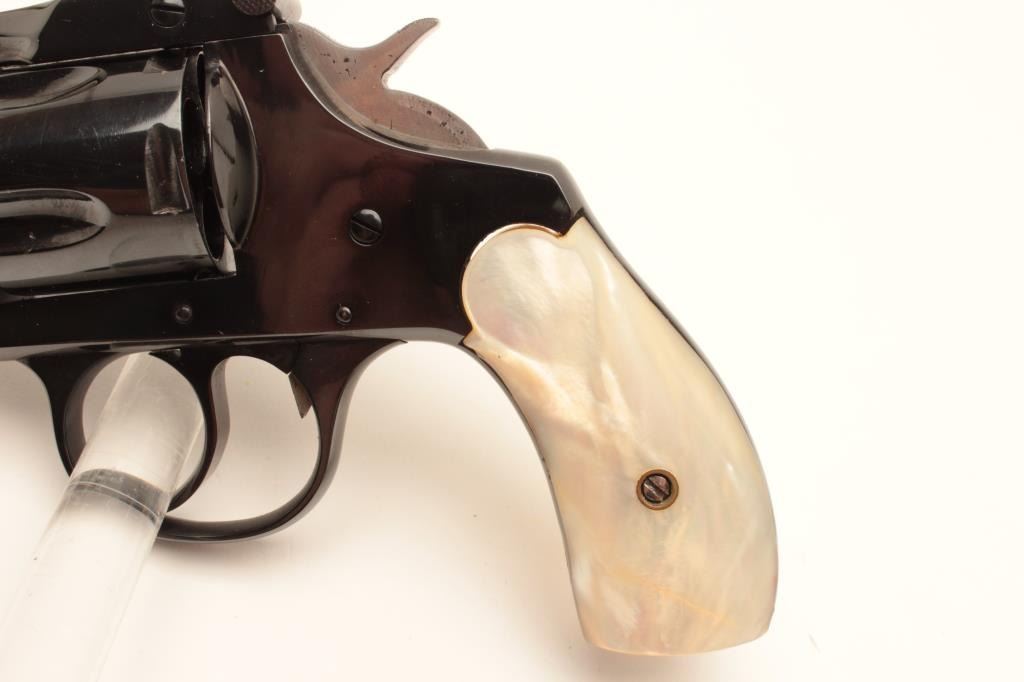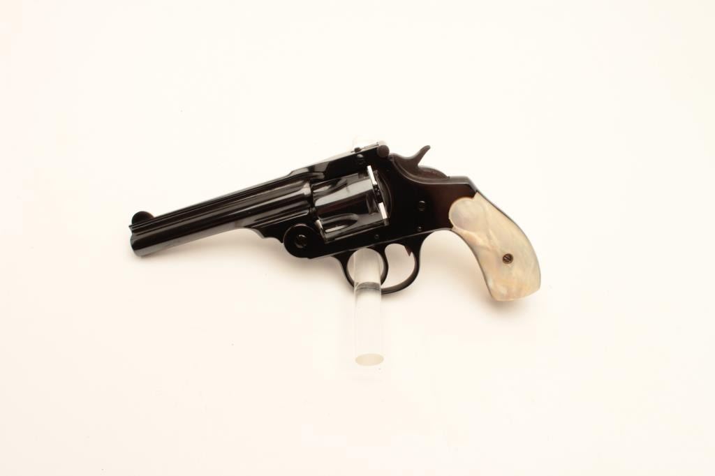 Lot 1388 18BE-7 IVER JOHNSON #T57747Iver Johnson top break DA, .38 cal, #T57747, 4" barrel with mother of pe