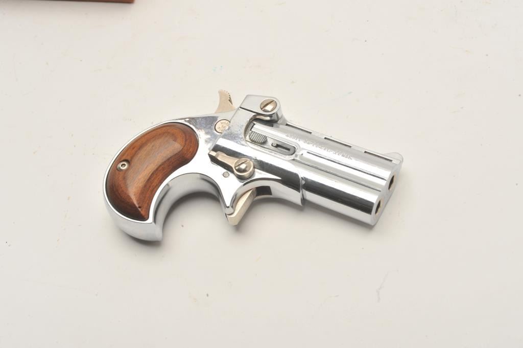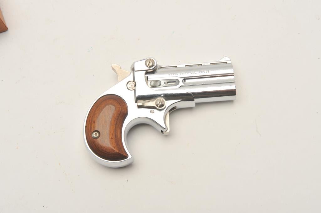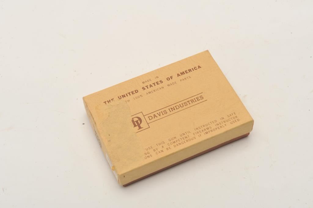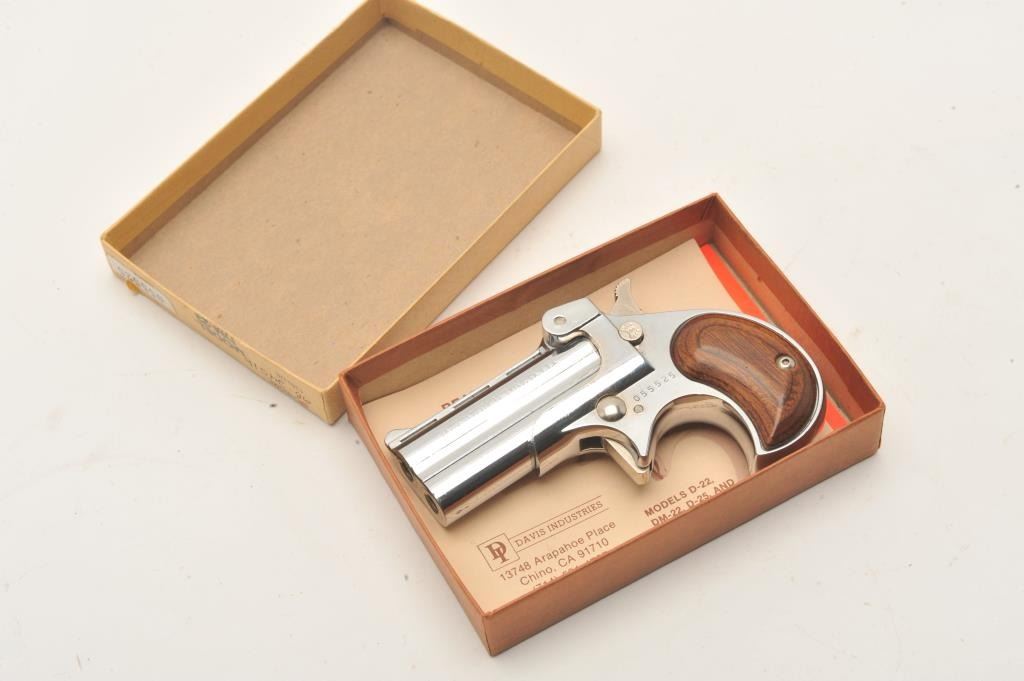 18BF-3 DAVIS DERRINGER #055525Davis Industries DM-22 derringer, chrome finish, .22 cal., #055525, in very good to fine condition, in the original box, which is very good plus. (Modern / PPT) Est $100-200Davis Industries DM-22 derringer, chrome finish, .22 cal., #055525, in very good to fine condition, in the original box, which is very good plus. (Modern / PPT) Est $100-200