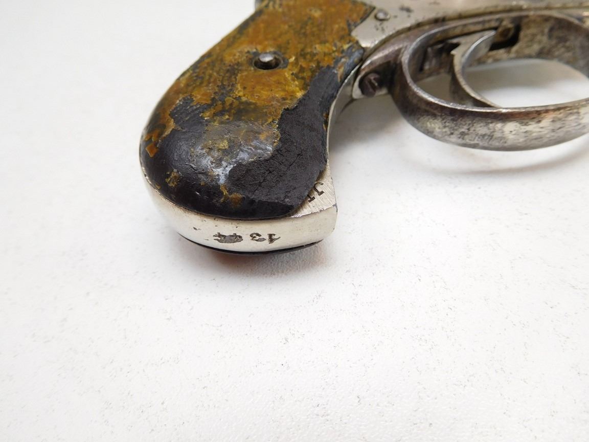 NICKEL FINISH, WOOD GRIPS, NOT INDEXING , BARREL LENGTH: 63MM , SERIAL: 1344 , ACTION: REVOLVER , CONDITION: 4/10 , STOCK # P1863 , CLASS: CANADIAN PROHIBITED CLASS