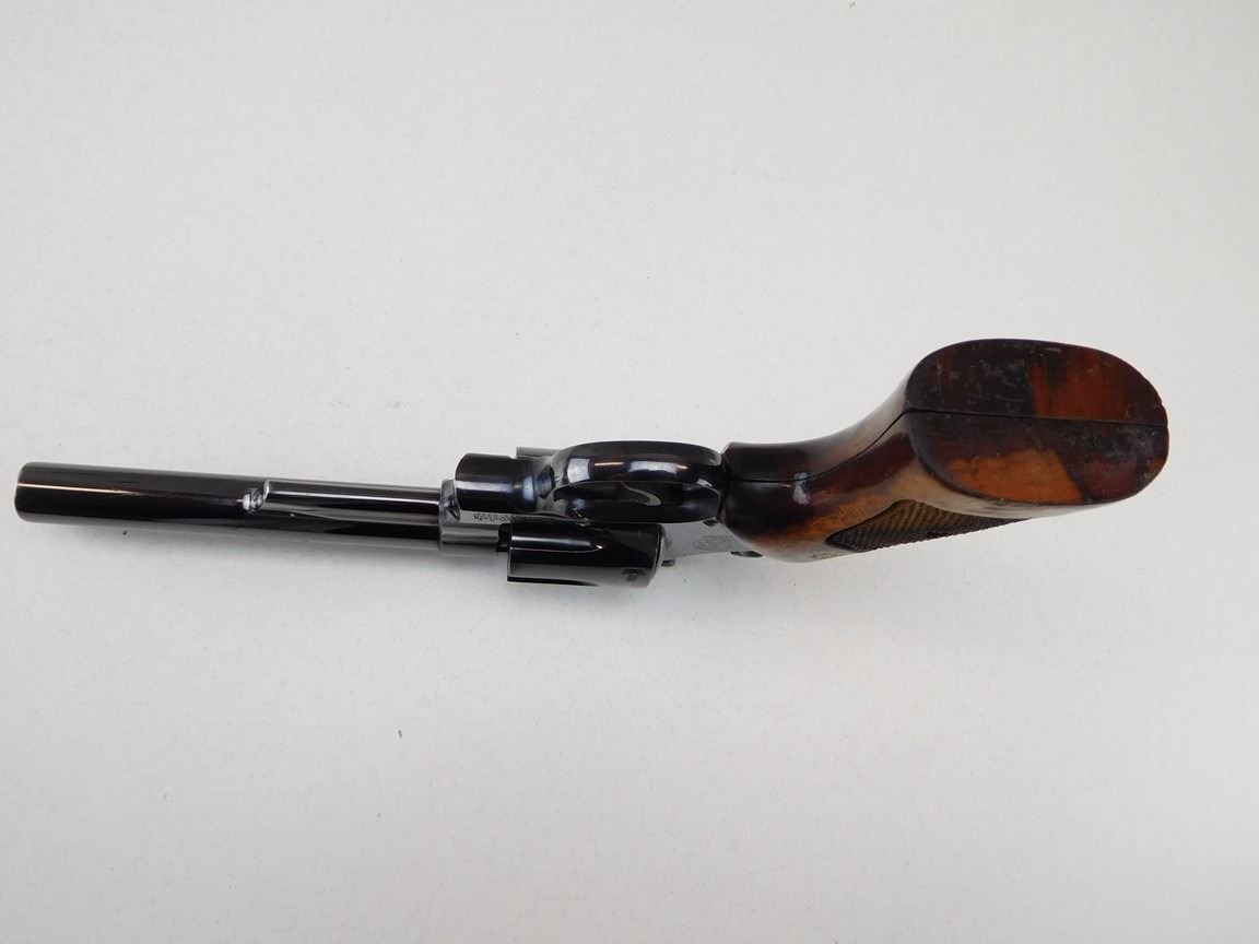 ADJUSTABLE TARGET SIGHTS, CHECKERED WOODEN GRIPS, CASE COLOURED TRIGGER AND HAMMER, SHROUDED EJECTOR, 6 SHOT CAPACITY, EXCELLENT BORE, MANUFACTURED 1968 - 1982 , BARREL LENGTH: 152MM , SERIAL: S319268 , ACTION: REVOLVER , CONDITION: 9/10 , STOCK # R2378 , CLASS: CANADIAN RESTRICTED CLASS