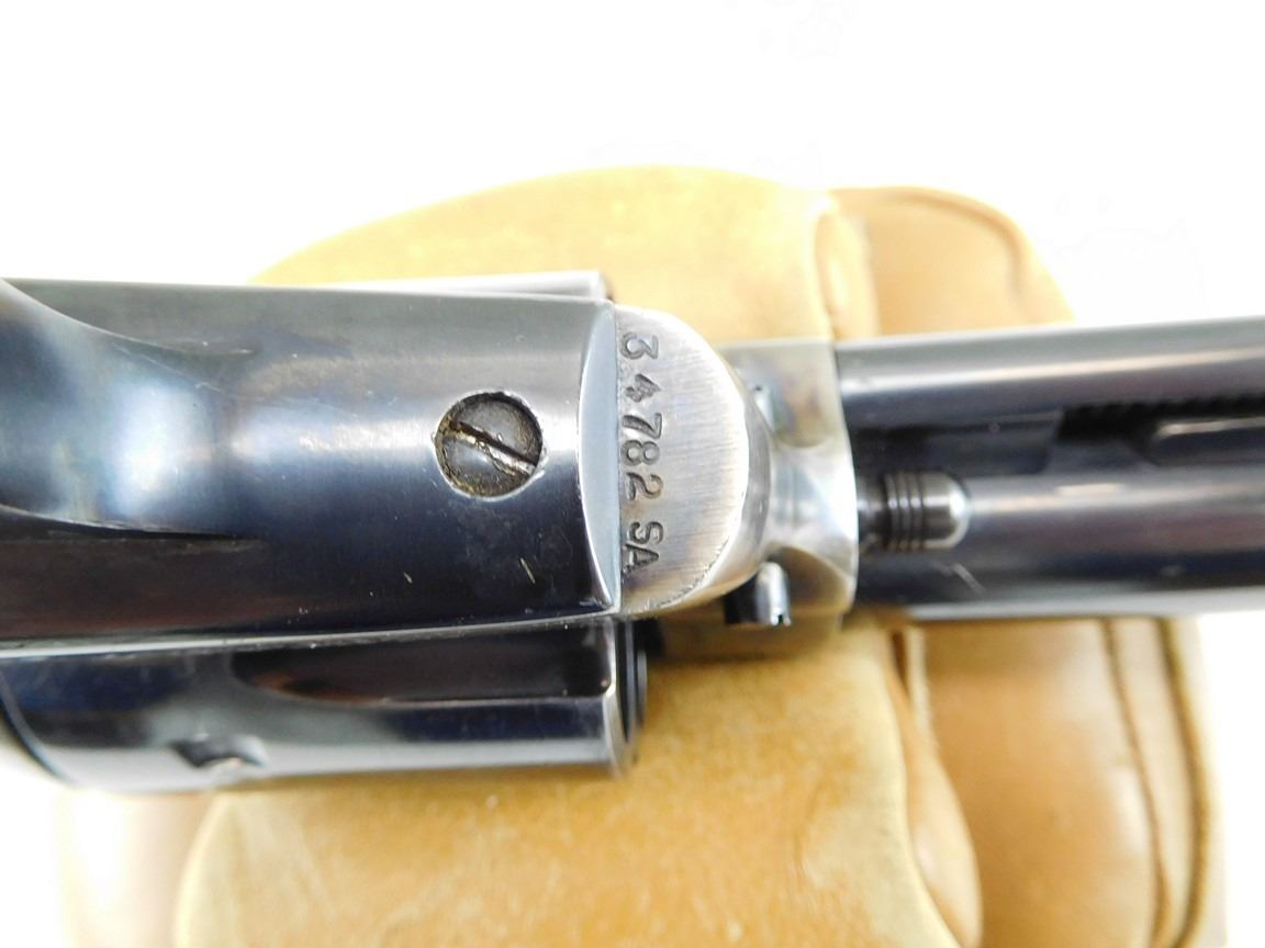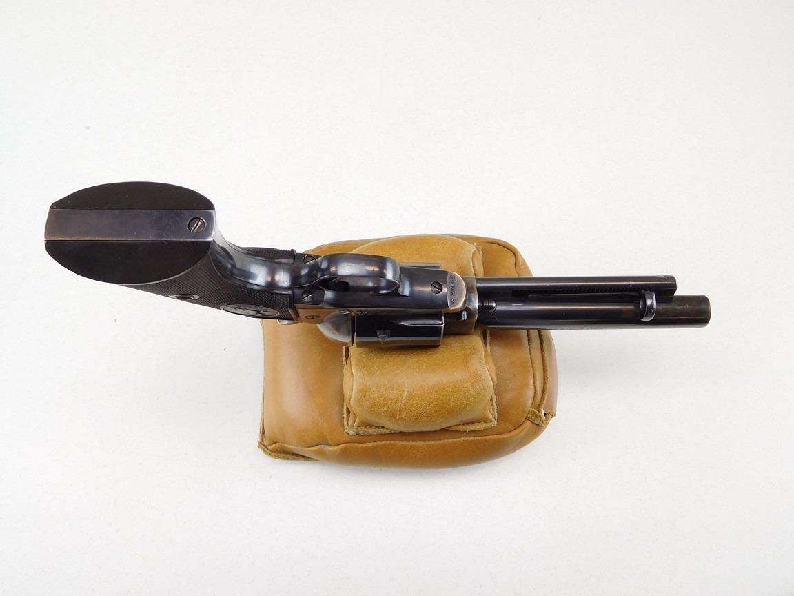 CASE COLOURED FRAME HAMMER , HARD RUBBER CHECKERED GRIPS, INDEXES AND LOCKS UP WELL, NOTCH AND BLADE SIGHT, EXCELLENT BORE , BARREL LENGTH: 140MM , SERIAL: 34782SA , ACTION: REVOLVER , CONDITION: 8/10 , STOCK # R2383 , CLASS: CANADIAN RESTRICTED CLASS