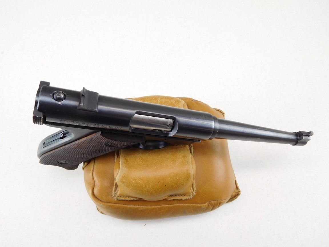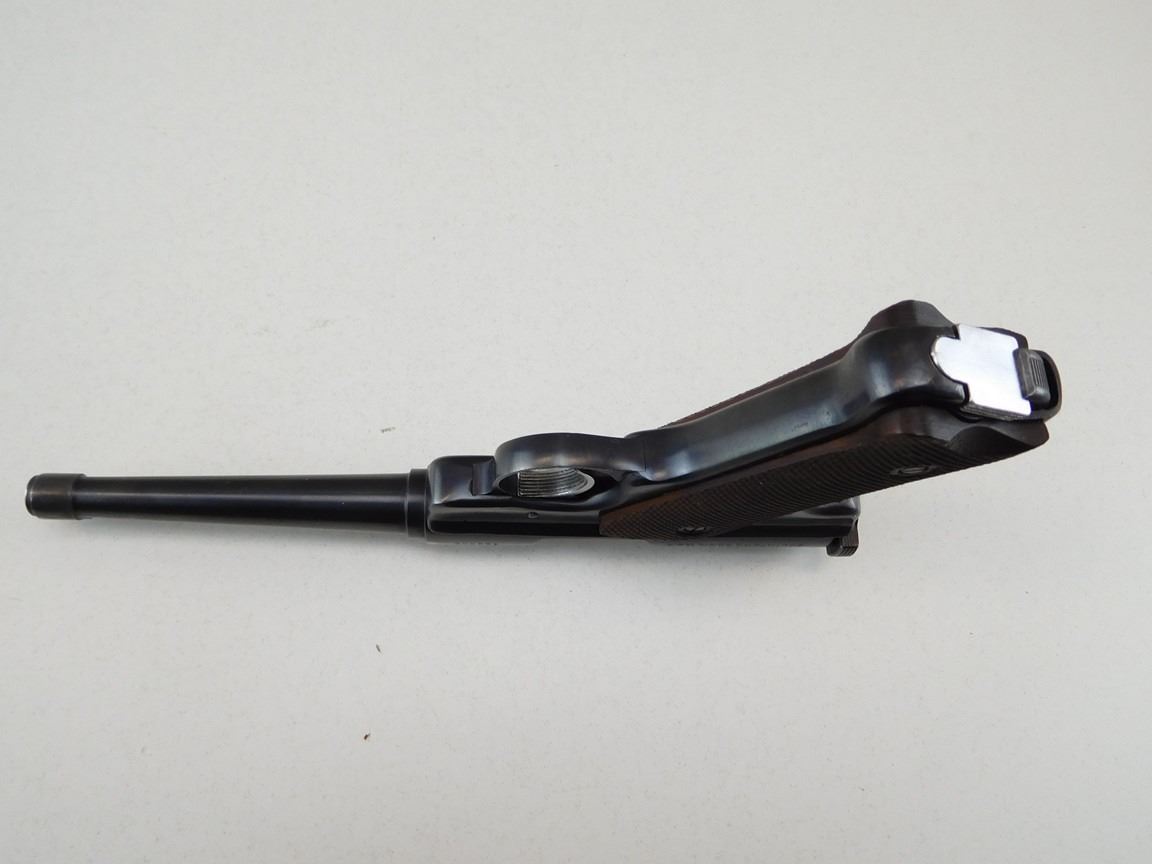 COMES WITH BOX AND 2 MAGAZINES, NOTCH AND BLADE SIGHTS, CHECKERED WOODEN GRIPS, BORE IS EXCELLENT , BARREL LENGTH: 152MM , SERIAL: 488852 , ACTION: SEMIAUTOMATIC HANDGUN , CONDITION: 9/10 , STOCK # R2390 , CLASS: CANADIAN RESTRICTED CLASS