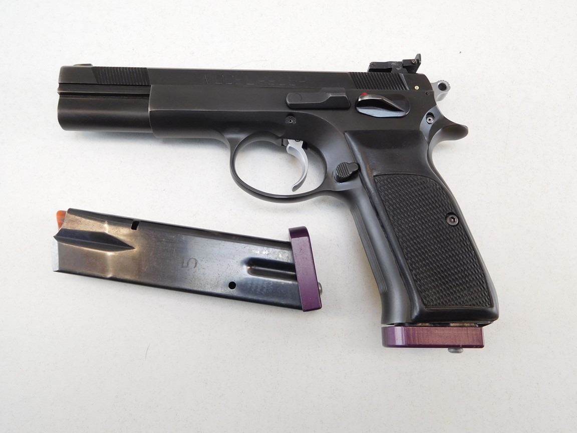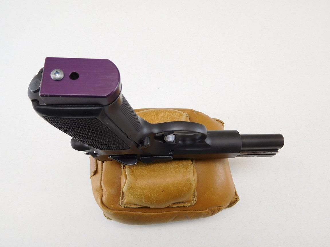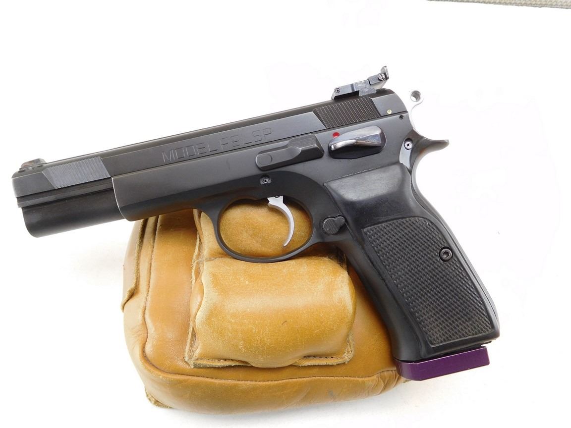 COMES WITH 2 MAGAZINES, CHECKERED RUBBER GRIPS, ADJUSTABLE TARGET SIGHTS, BORE IS GOOD, BARREL/SLIDE IS PORTED , BARREL LENGTH: 127MM , SERIAL: AM12085 , ACTION: SEMIAUTOMATIC HANDGUN , CONDITION: 8/10 , STOCK # R2451 , CLASS: CANADIAN RESTRICTED CLASS