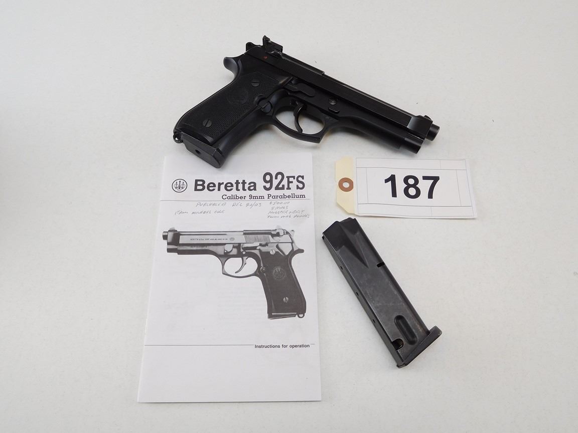 Lot 187 BERETTA , MODEL: 92FS , CALIBER: 9MM LUGER