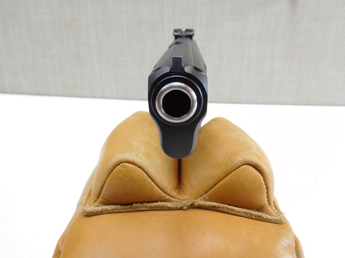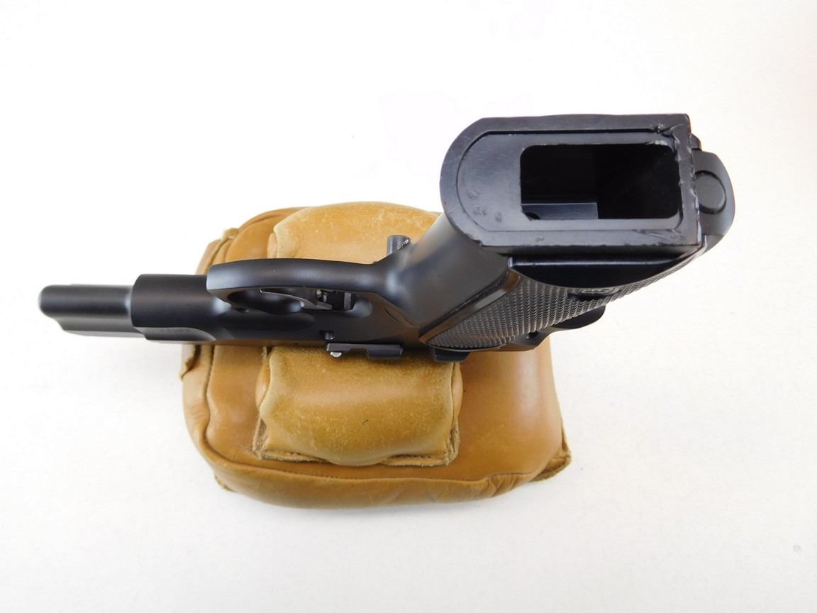 COMES WITH CASE, 2 MAGAZINES AND A CLEANING ROD, CHECKERED PLASTIC GRIPS, ADJUSTABLE TARGET SIGHTS BORE IS BRILLIANT , BARREL LENGTH: 120MM , SERIAL: G8588 , ACTION: SEMIAUTOMATIC HANDGUN , CONDITION: 9/10 , STOCK # R2462 , CLASS: CANADIAN RESTRICTED CLASS