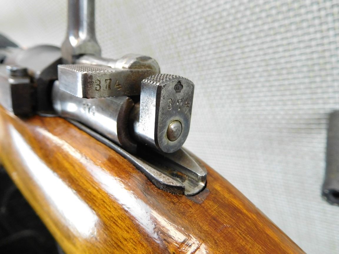 FULL MILITARY WOOD CONFIGURATION, WINDAGE INDICATOR IN THE BUTT STOCK, METAL BUTT PLATE, CLEANING ROD, SLING LOOPS, MILITARY SIGHTS, EXCELLENT BORE , BARREL LENGTH: 740MM , SERIAL: 65374 , ACTION: BOLT ACTION RIFLE , CONDITION: 8/10 , STOCK # 6666 , CLASS: CANADIAN NON RESTRICTED CLASS
