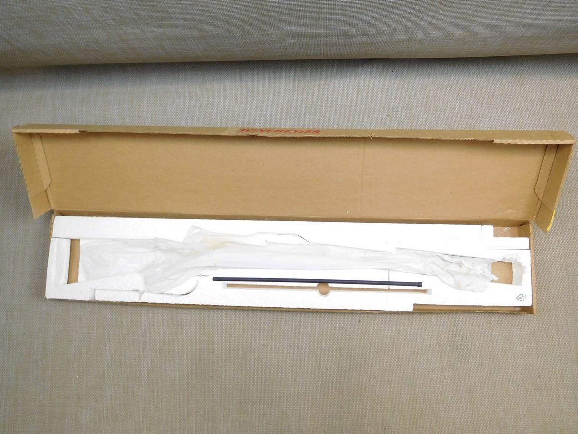 COMES WITH A BOX, NATIONAL WILDLIFE TURKEY FEDERATION 1973- 2003 COMMEMORATIVE, WOODEN CHECKERED PISTOL AND FOREND, FIBER OPTIC FRONT AND REAR SIGHT, APPEARS UNFIRED WITH TAG STILL ON, GOLD TURKEY ENGRAVING, HARD RUBBER BUTT PLATE , BARREL LENGTH: 24" , SERIAL: NWTF1552Y3 , ACTION: LEVER ACTION RIFLE , CONDITION: AS NEW , STOCK # 6685 , CLASS: CANADIAN NON RESTRICTED CLASS