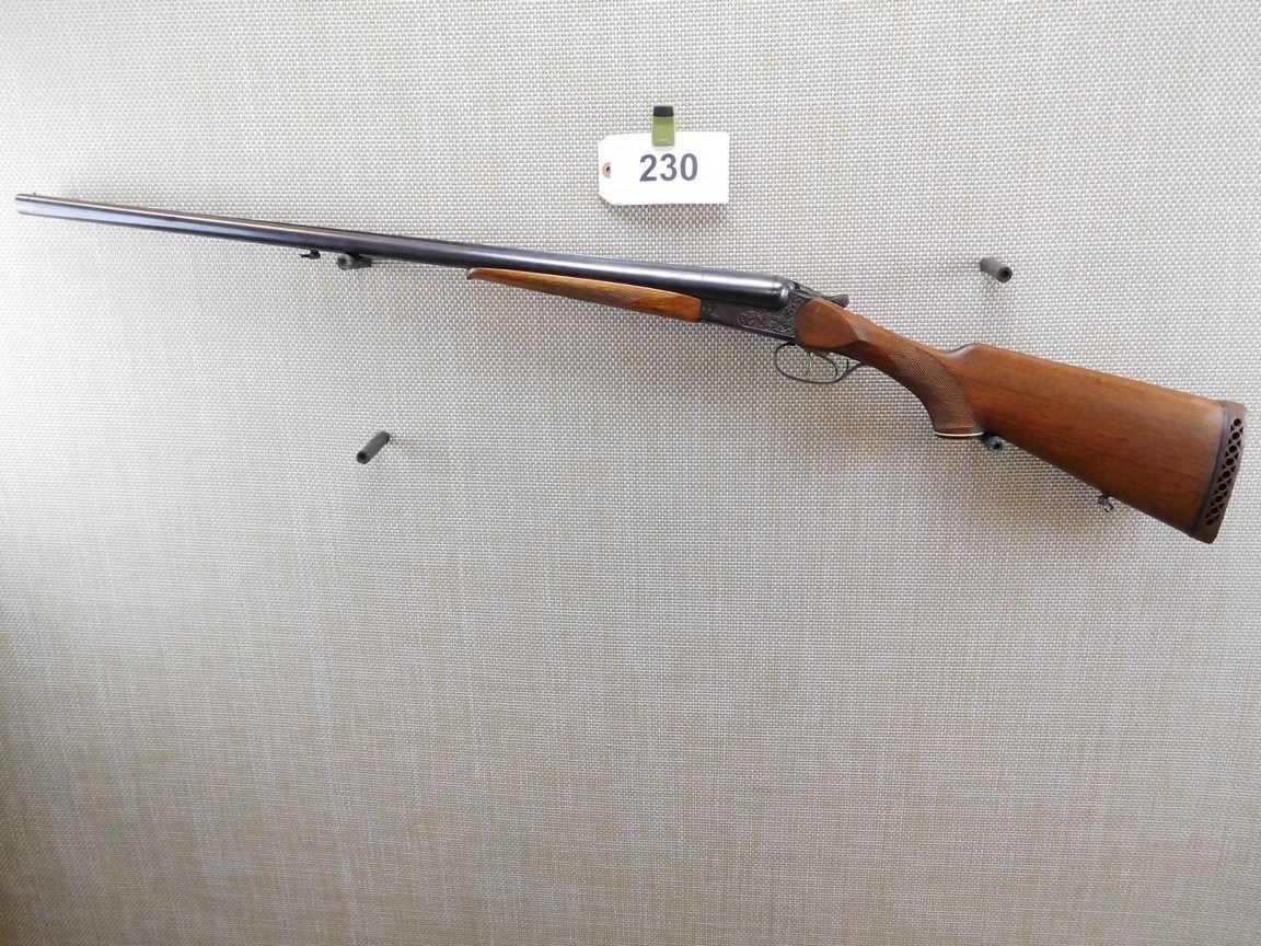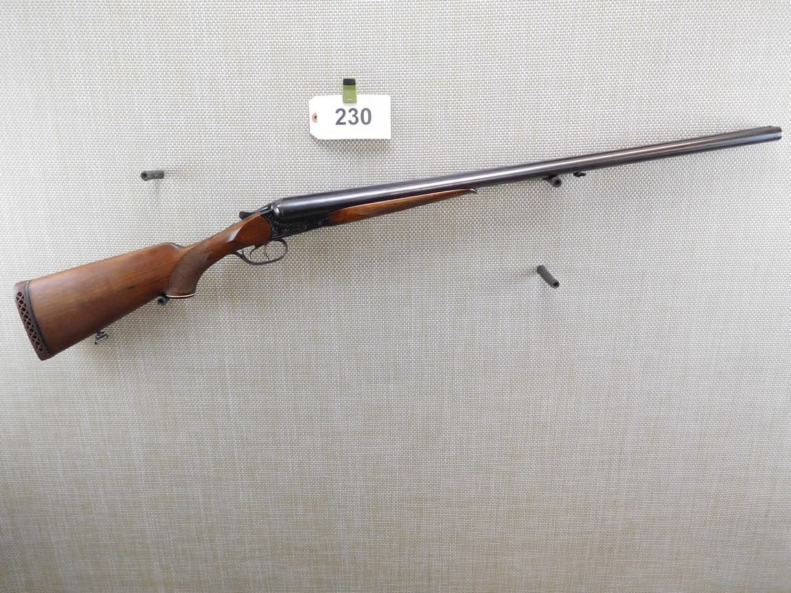 CHECKERED WALNUT WOOD , CAPPED PISTOL GRIP STOK, VENTED RECOIL PAD, ENGRAVED RECEIVER, EXCELLENT BORE, FULL AND MODIFIED CHOKES, BEAD FRONT SIGHT , BARREL LENGTH: 29" , SERIAL: C13832 , ACTION: SIDE BY SIDE BREAK ACTION SHOT , CONDITION: 8/10 , STOCK # 6695 , CLASS: CANADIAN NON RESTRICTED CLASS