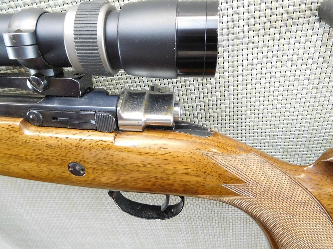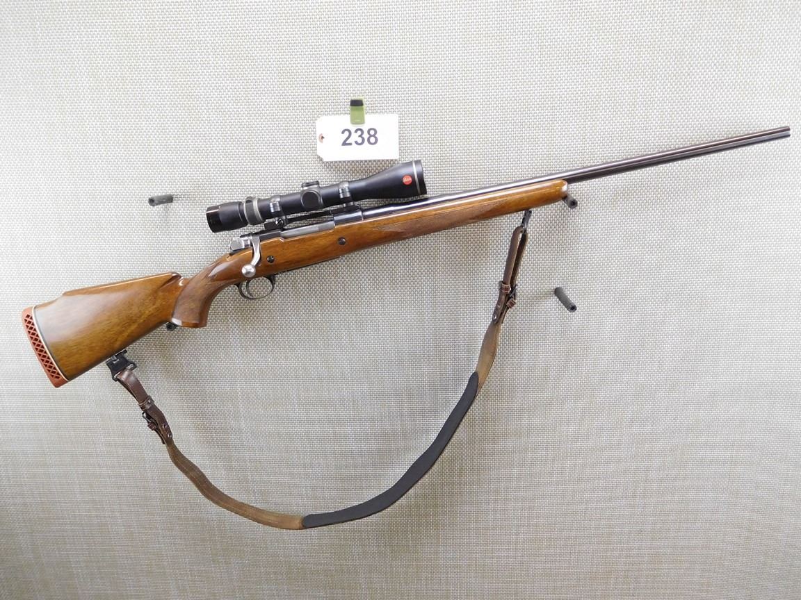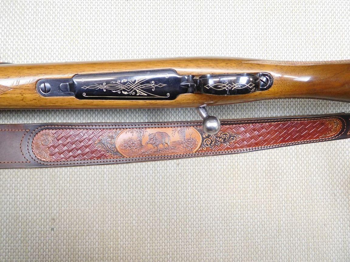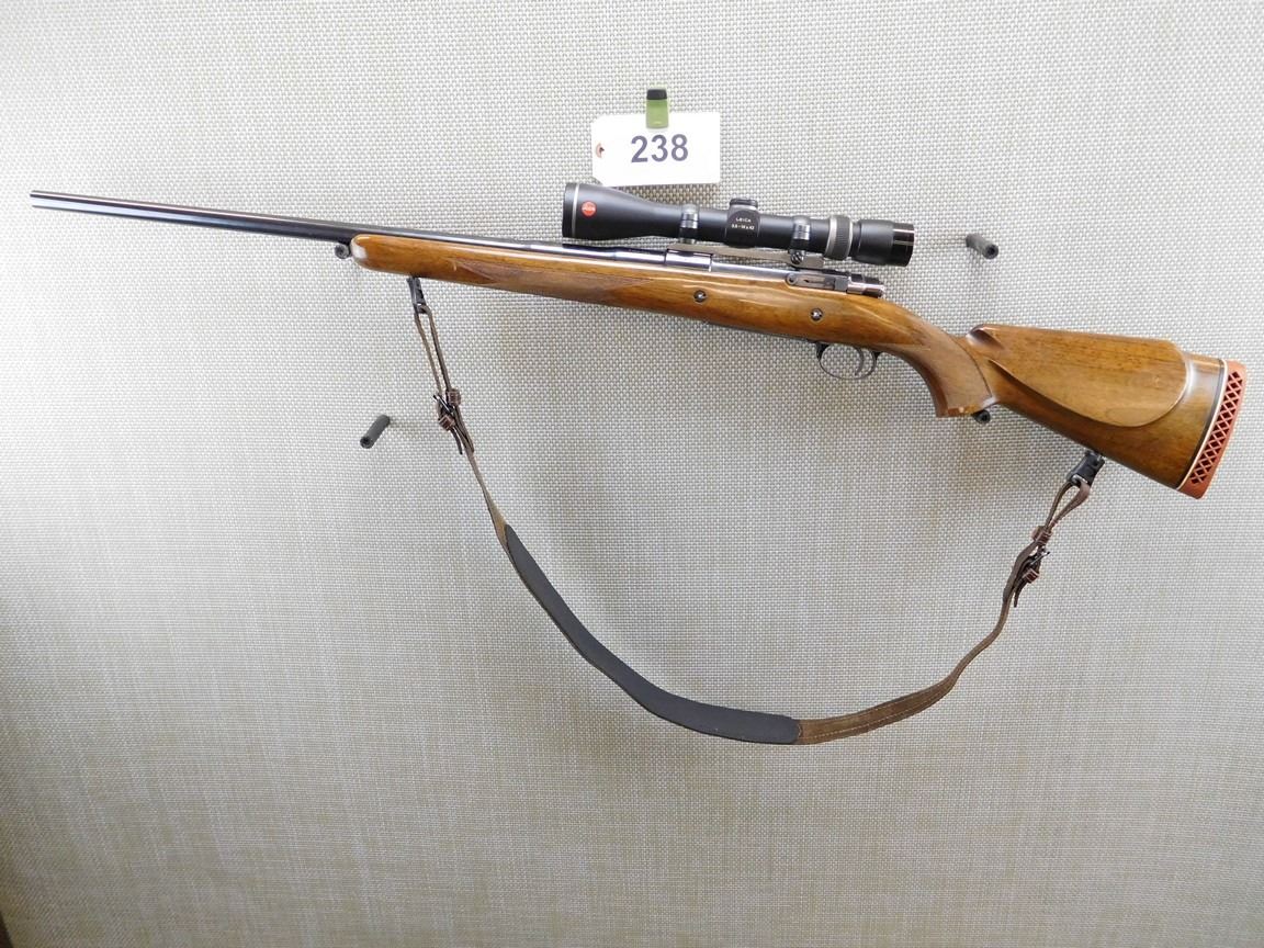 MANUFACTURED IN 1965 BY SERIAL #, HAS THE BELGIAN FN PROOFS, HINGED FLOOR PLATE WITH GOLD ENGRAVING, LEICA 3.5 - 10 X 42 SCOPE, RECOIL PAD, CHECKERED FOREND AND PISTOL GRIP WITH MONTE CARLO STOCK, EXCELLENT BORE, DETACHABLE SLING SWIVELS WITH LEATHER SLING, BARREL LENGTH: 24" , SERIAL: 5L30552 , ACTION: BOLT ACTION RIFLE , CONDITION: 8/10 , STOCK # 6703 , CLASS: CANADIAN NON RESTRICTED CLASS