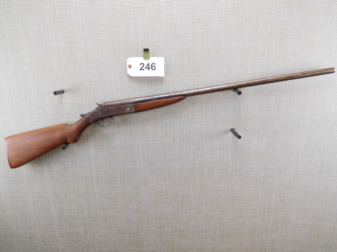 REPLACED RUBBER BUTT PAD, BROWN FINISH, CRACKED STOCK, BEAD FRONT SIGHT , BARREL LENGTH: 30" , SERIAL: TM396 , ACTION: SINGLE SHOT BREAK ACTION SHOTGUN , CONDITION: 5/10 , STOCK # 6711 , CLASS: CANADIAN NON RESTRICTED CLASS
