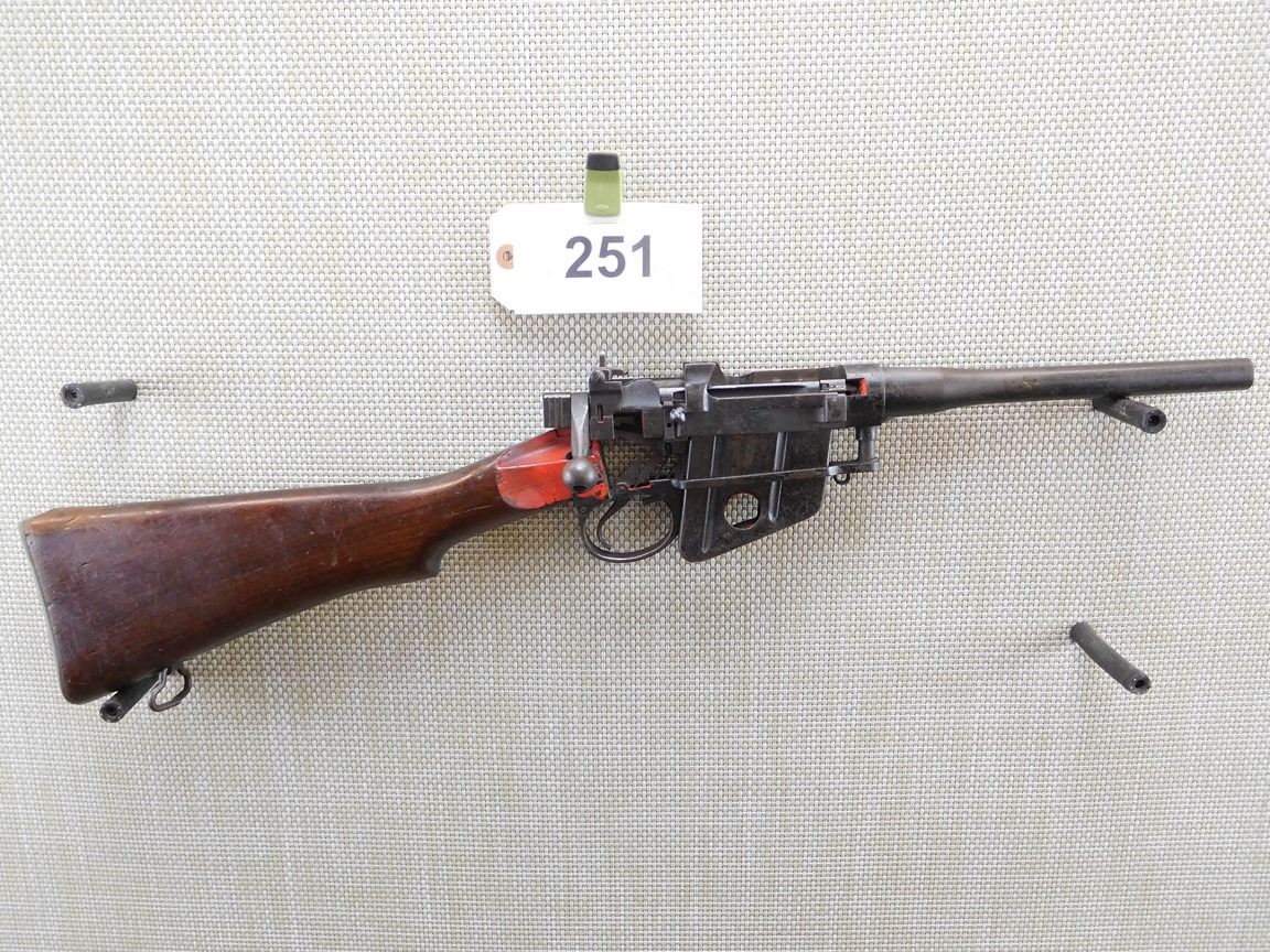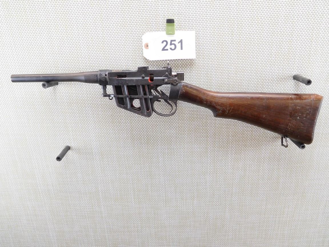 NOTE THIS IS A ARMORERS TRAINING EXAMPLE, CAN NOT BE FIRED, COMES MAGAZINE, HAS MATCHING SERIAL NUMBERS, ADJUSTABLE REAR PEEP SIGHT, NO FRONT SIGHT, STEEL BUTT PAD WOULD IMPLY IT IS A LONG BRANCH MANUFACTURE, REAR SLING SWIVEL , BARREL LENGTH: 9" , SERIAL: SKN1067 , ACTION: BOLT ACTION RIFLE , CONDITION: 7/10 , STOCK # 6716 , CLASS: CANADIAN NON RESTRICTED CLASS