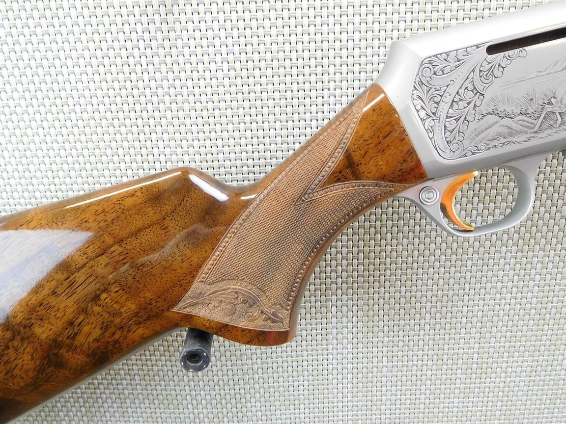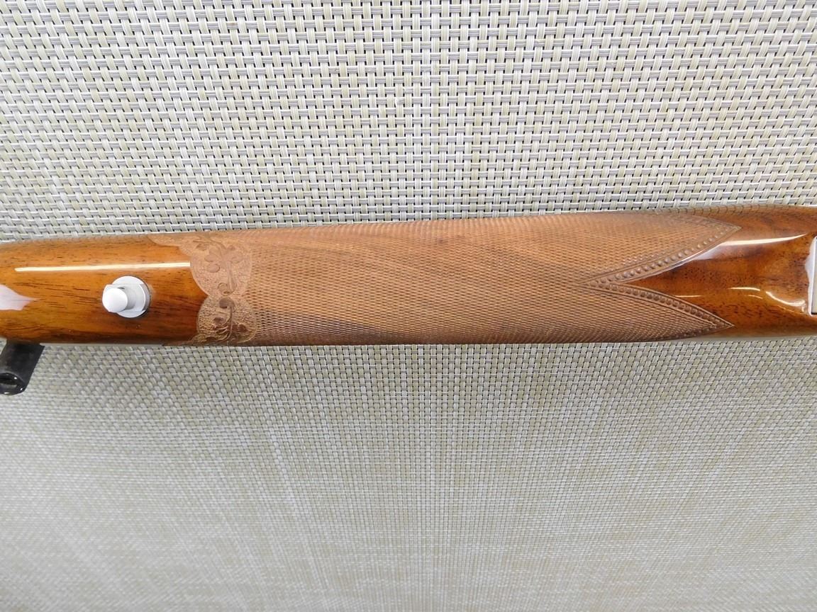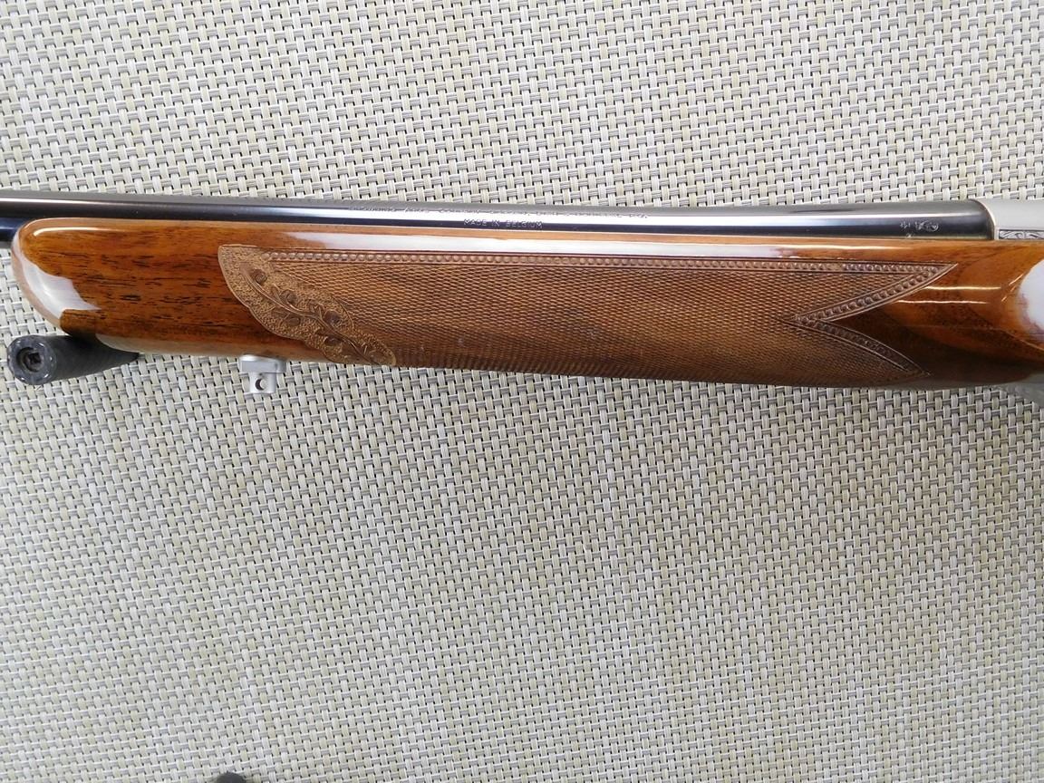 COMES WITH MAGAZINE, HAS A HINGED FLOOR PLATE AND A SOFT CASE, ENGRAVED RECEEIVER WITH GAME SCENE, DRILLED AND TAPPED FOR SCOPE MOUNT, HIGH GRADE CHECKERED AND AND ENGRAVED STOCK, SLING SWIVELS, HARD RUBBER BUTT PAD, GOLD TRIGGER, BORE IS EXCELLENT , BARREL LENGTH: 23" , SERIAL: 72064M76 , ACTION: SEMI AUTOMATIC RIFLE , CONDITION: AS NEW CONDITION , STOCK # 6717 , CLASS: CANADIAN NON RESTRICTED CLASS