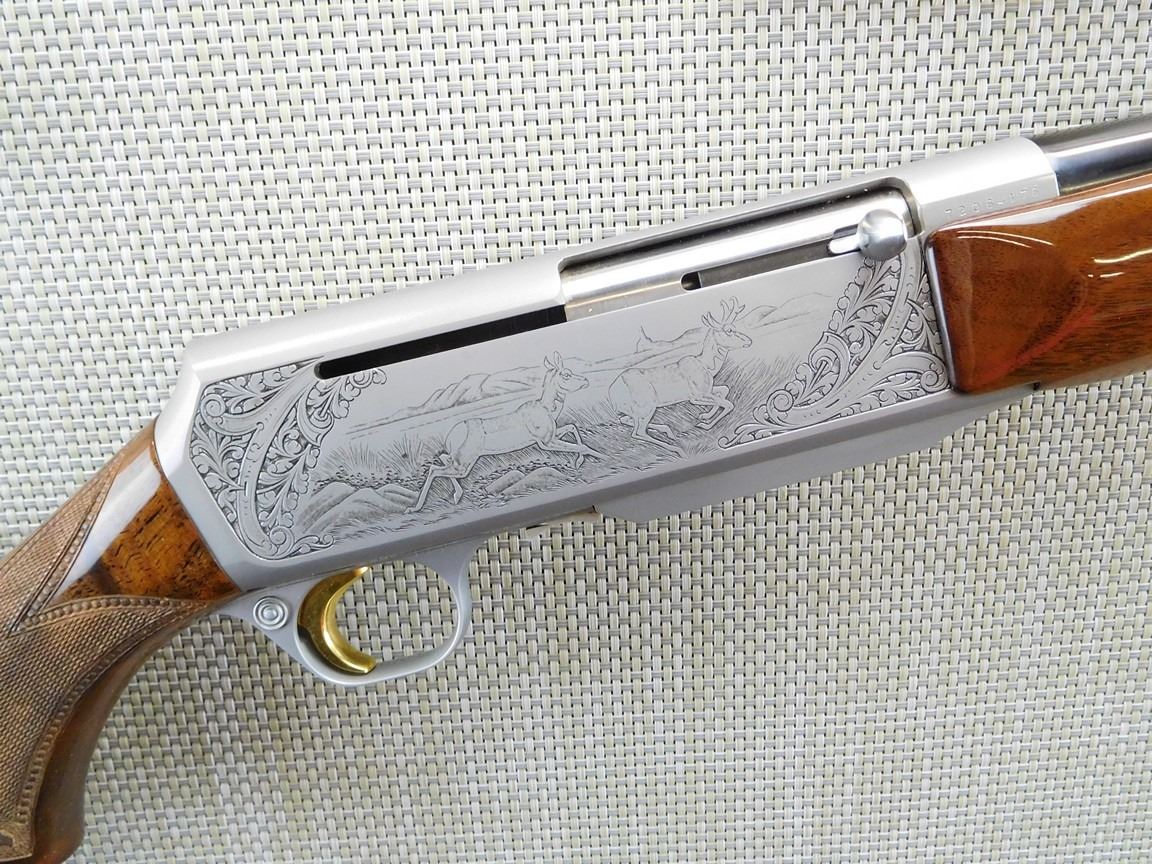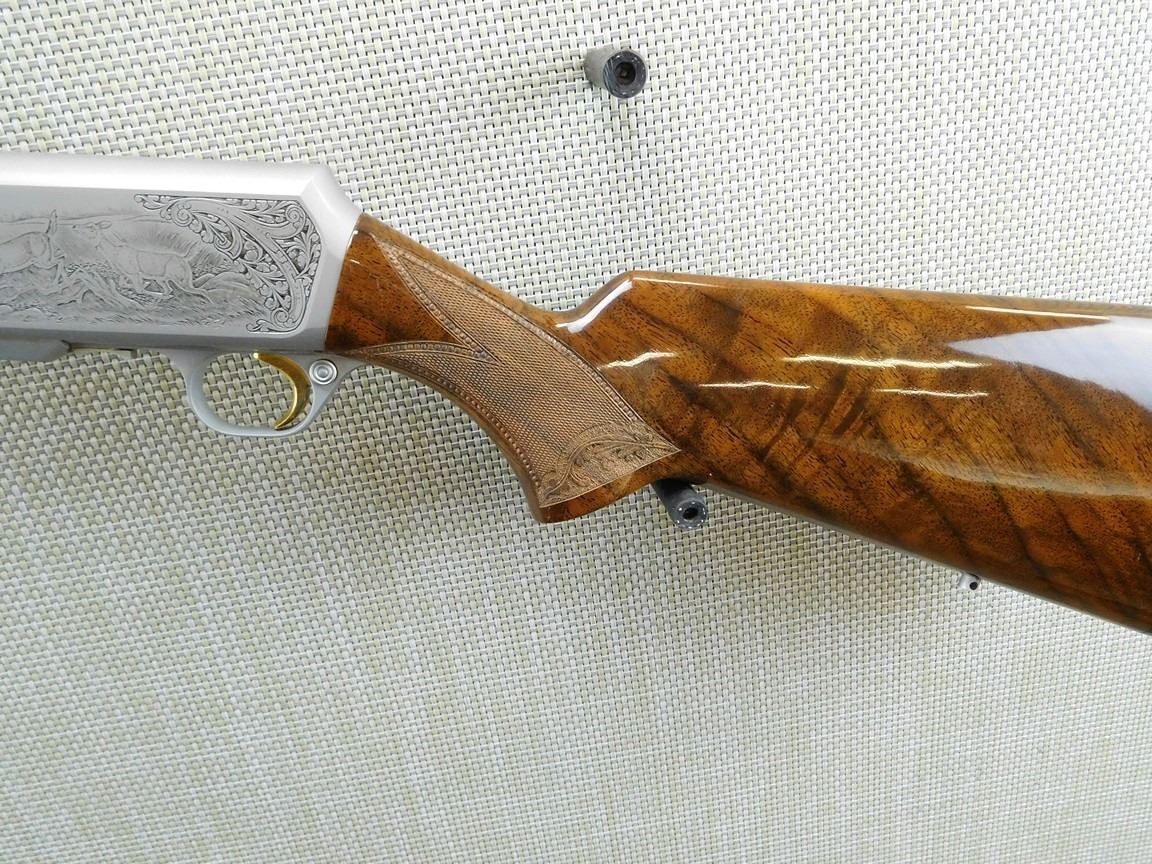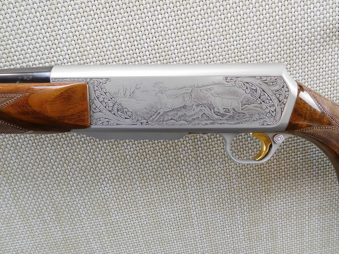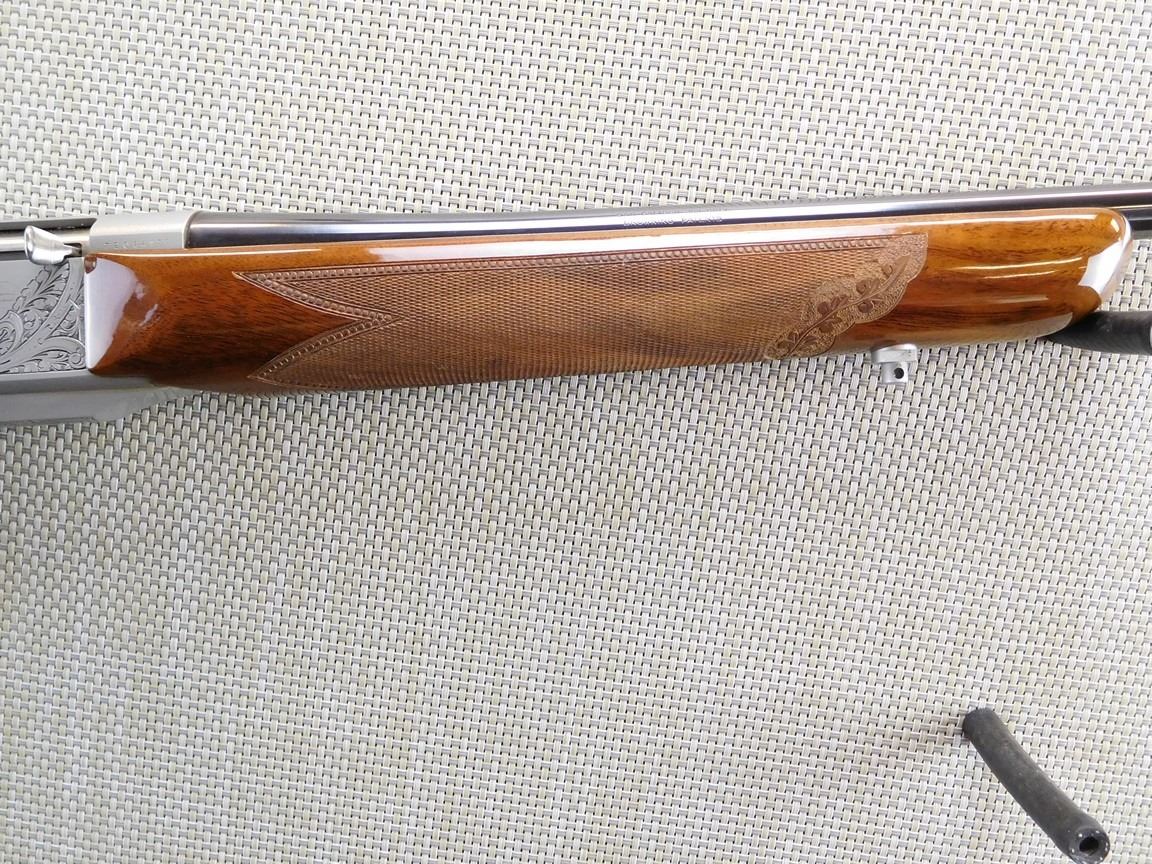 COMES WITH MAGAZINE, HAS A HINGED FLOOR PLATE AND A SOFT CASE, ENGRAVED RECEEIVER WITH GAME SCENE, DRILLED AND TAPPED FOR SCOPE MOUNT, HIGH GRADE CHECKERED AND AND ENGRAVED STOCK, SLING SWIVELS, HARD RUBBER BUTT PAD, GOLD TRIGGER, BORE IS EXCELLENT , BARREL LENGTH: 23" , SERIAL: 72064M76 , ACTION: SEMI AUTOMATIC RIFLE , CONDITION: AS NEW CONDITION , STOCK # 6717 , CLASS: CANADIAN NON RESTRICTED CLASS
