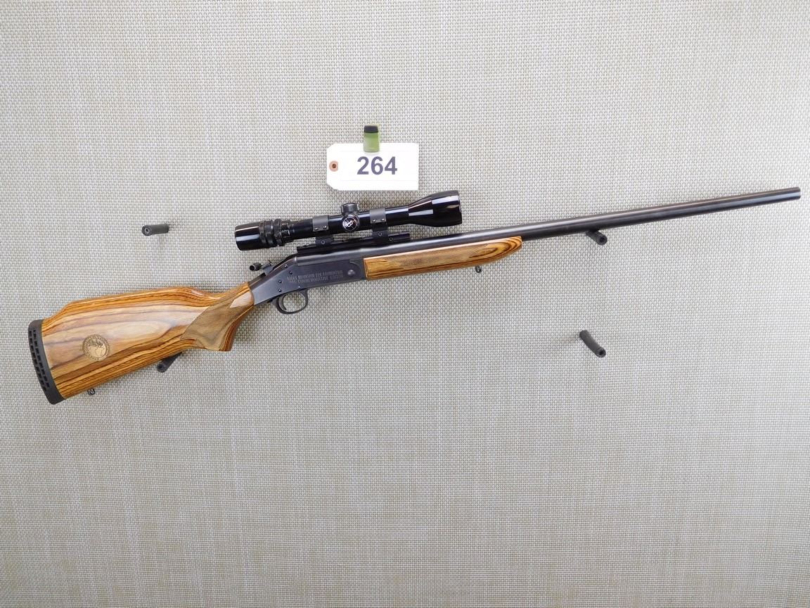 1995 ROCKY MOUNTAIN ELK FOUNDATION COMMEMORATIVE, BUSHNELL 3 - 9 SCOPE, NO SIGHTS, LAMINATED MONTE CARLO STOCK WITH CHECKERED FOREND AND SEMI PISTOL GRIP, EXCELLENT BORE, SLING STUDS, VENTED RUBBER BUTT PAD , BARREL LENGTH: 26" , SERIAL: HJ280426 , ACTION: SINGLE SHOT BREAK ACTION RIFLE , CONDITION: 9/10 , STOCK # 6729 , CLASS: CANADIAN NON RESTRICTED CLASS