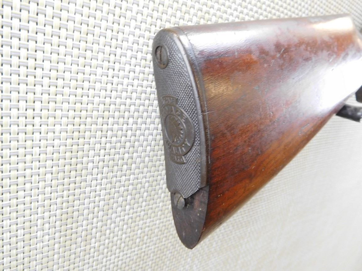 DRILLED AND TAPPED FOR RECEIVER SIGHT, BORE IS GOOD, CRACKED AND MISSING PIECE OUT OF THE BUTT PLATE, RAMP FRONT AND ADJUSTABLE REAR SIGHT , BARREL LENGTH: 24" , SERIAL: 2260 , ACTION: LEVER ACTION RIFLE , CONDITION: 6/10 , STOCK # 6736 , CLASS: CANADIAN NON RESTRICTED CLASS